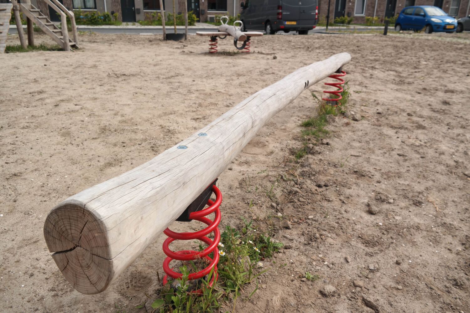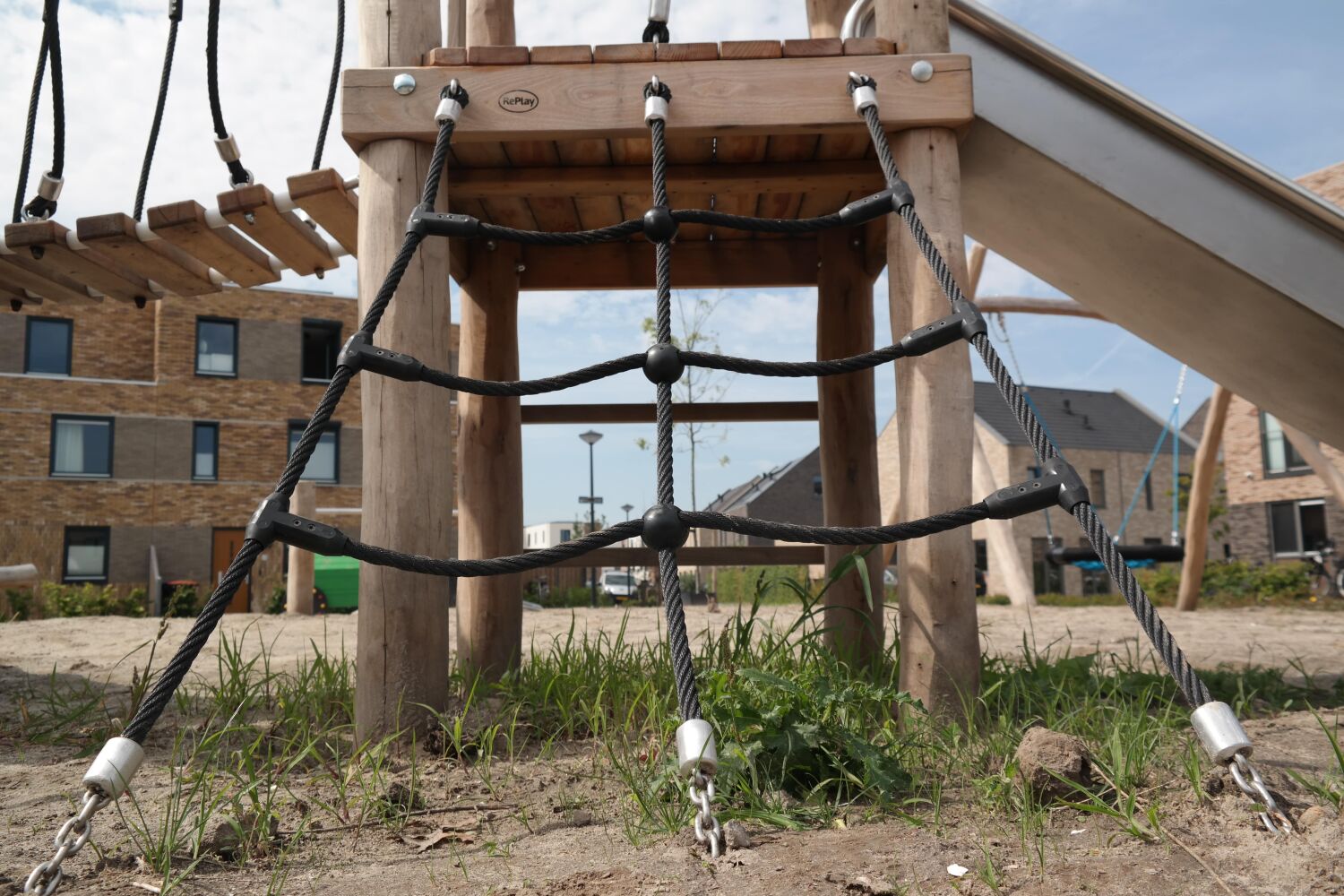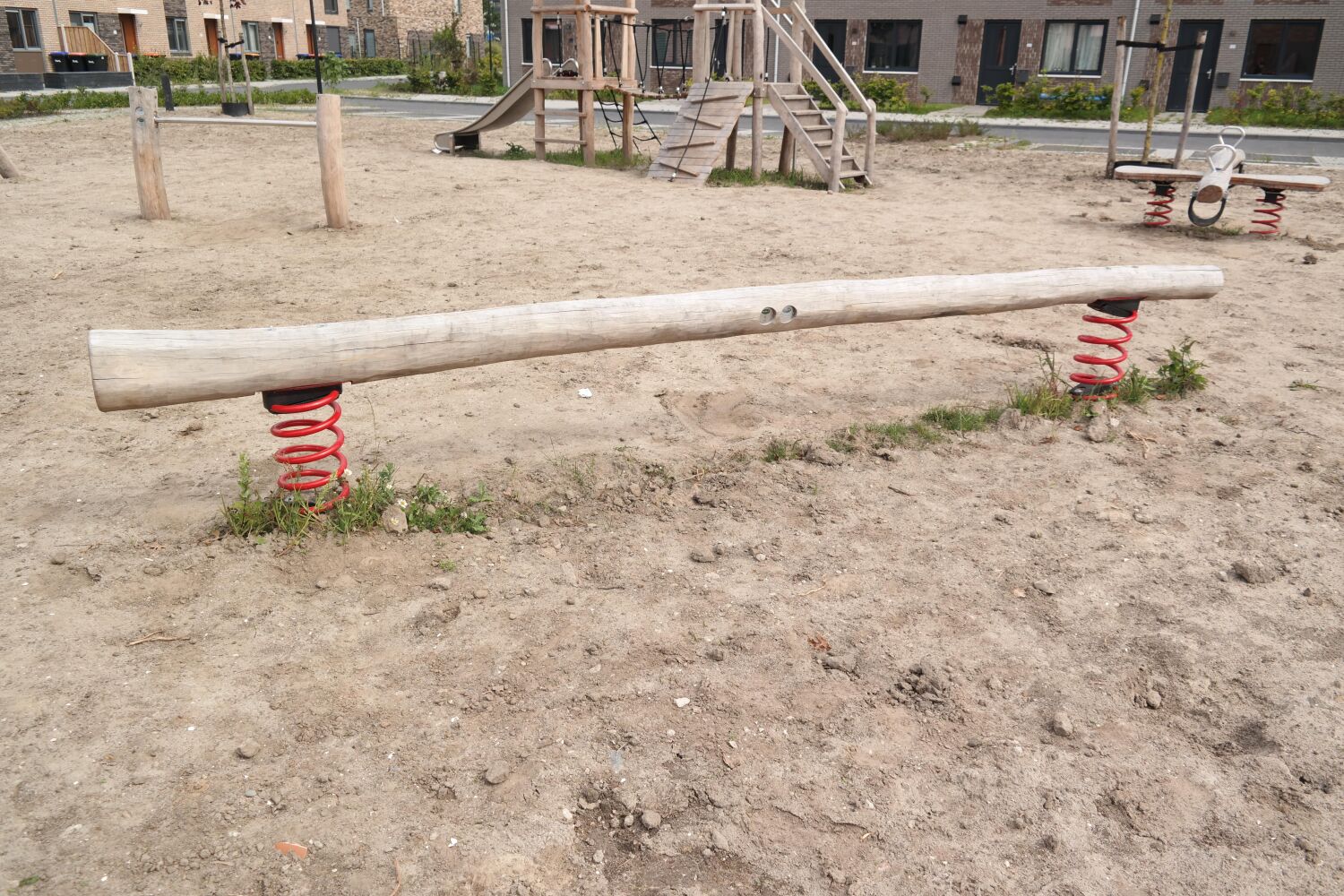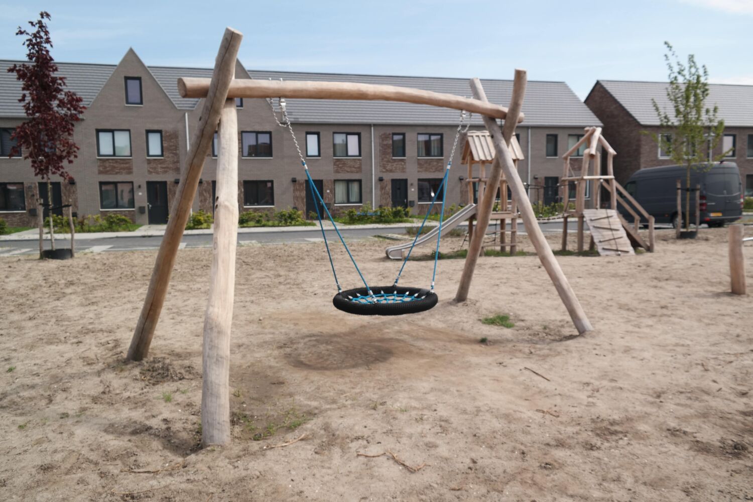 Aangezien de beschikbare ruimte voor de speelplek vrij ruim was, konden wij heel wat speeltoestellen kwijt in ons ontwerp. We hebben ervoor gekozen om alle speeltoestellen van Robinia hout te maken. De natuurlijke uitstraling van deze houtsoort past namelijk het beste bij de uitstraling van de nieuwe woonwijk. Zeker op een ondergrond van valzand zorgt dit voor een mooi plaatje.
