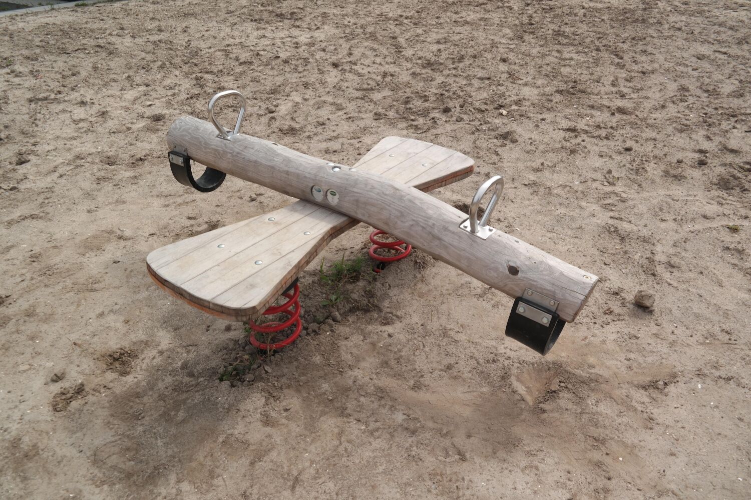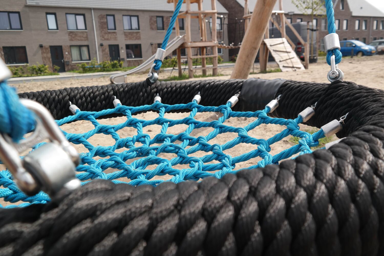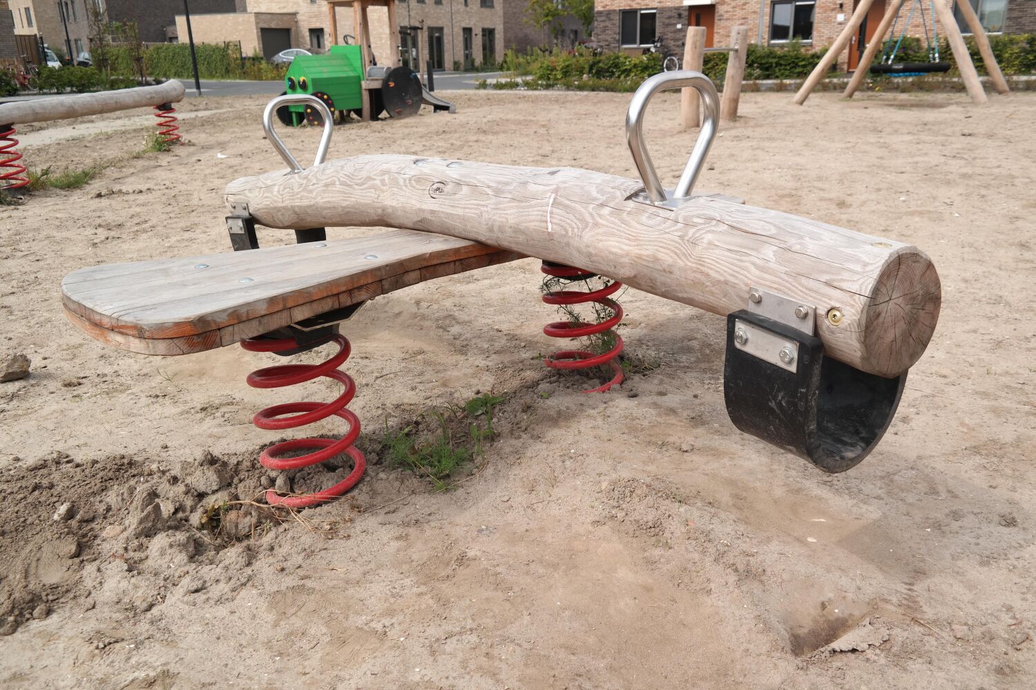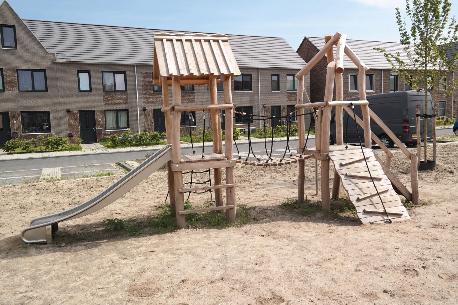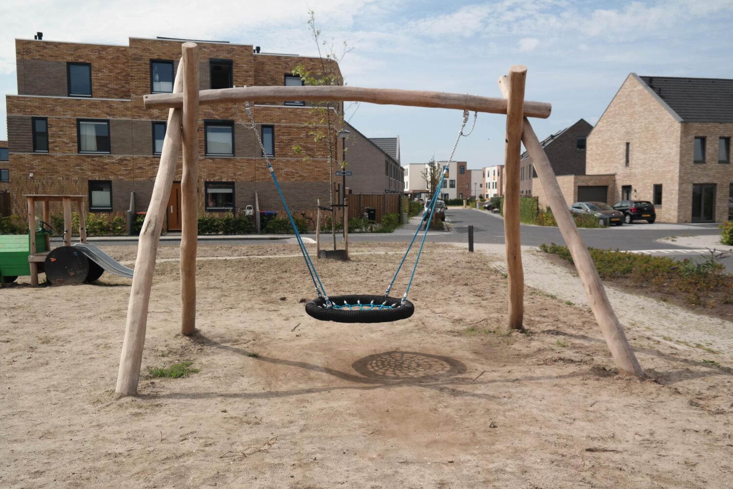 Aangezien de beschikbare ruimte voor de speelplek vrij ruim was, konden wij heel wat speeltoestellen kwijt in ons ontwerp. We hebben ervoor gekozen om alle speeltoestellen van Robinia hout te maken. De natuurlijke uitstraling van deze houtsoort past namelijk het beste bij de uitstraling van de nieuwe woonwijk. Zeker op een ondergrond van valzand zorgt dit voor een mooi plaatje.