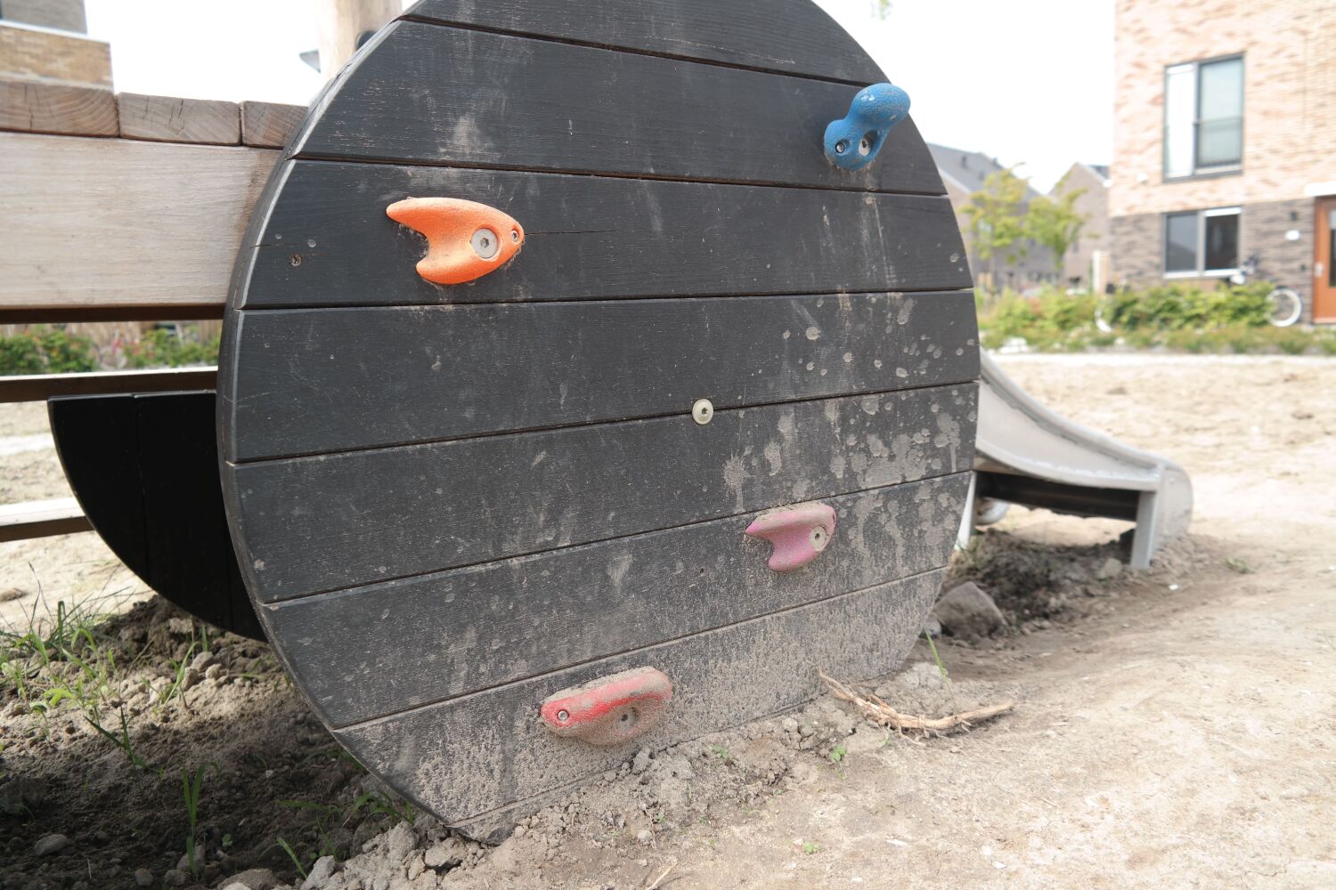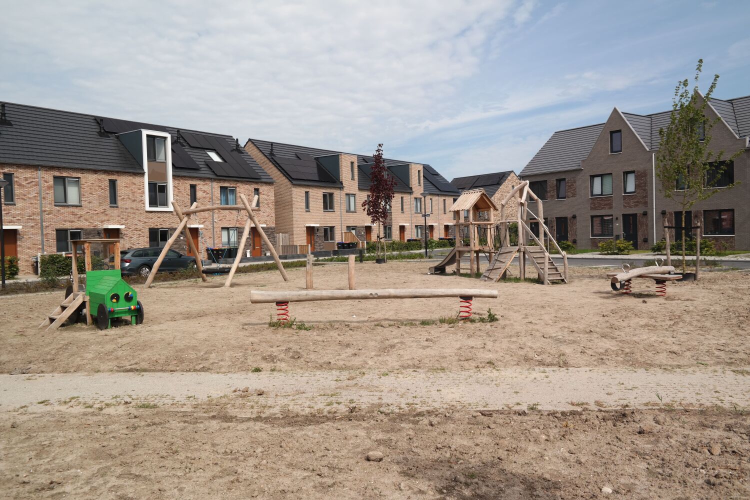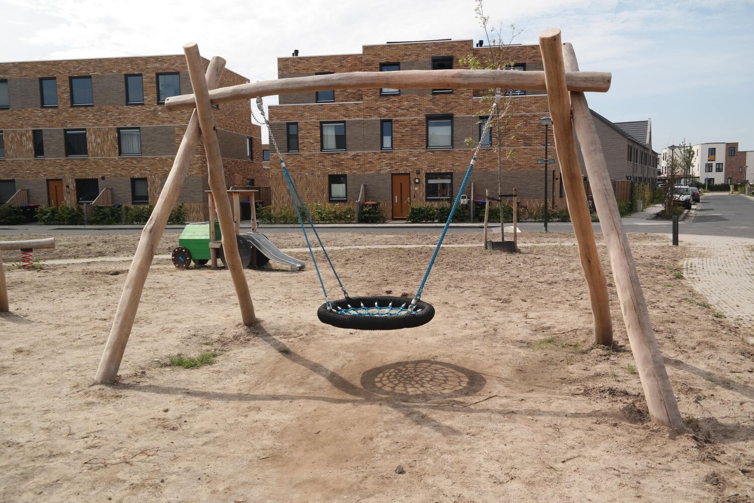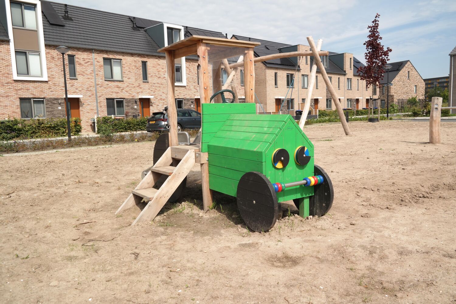 Aangezien de beschikbare ruimte voor de speelplek vrij ruim was, konden wij heel wat speeltoestellen kwijt in ons ontwerp. We hebben ervoor gekozen om alle speeltoestellen van Robinia hout te maken. De natuurlijke uitstraling van deze houtsoort past namelijk het beste bij de uitstraling van de nieuwe woonwijk. Zeker op een ondergrond van valzand zorgt dit voor een mooi plaatje.