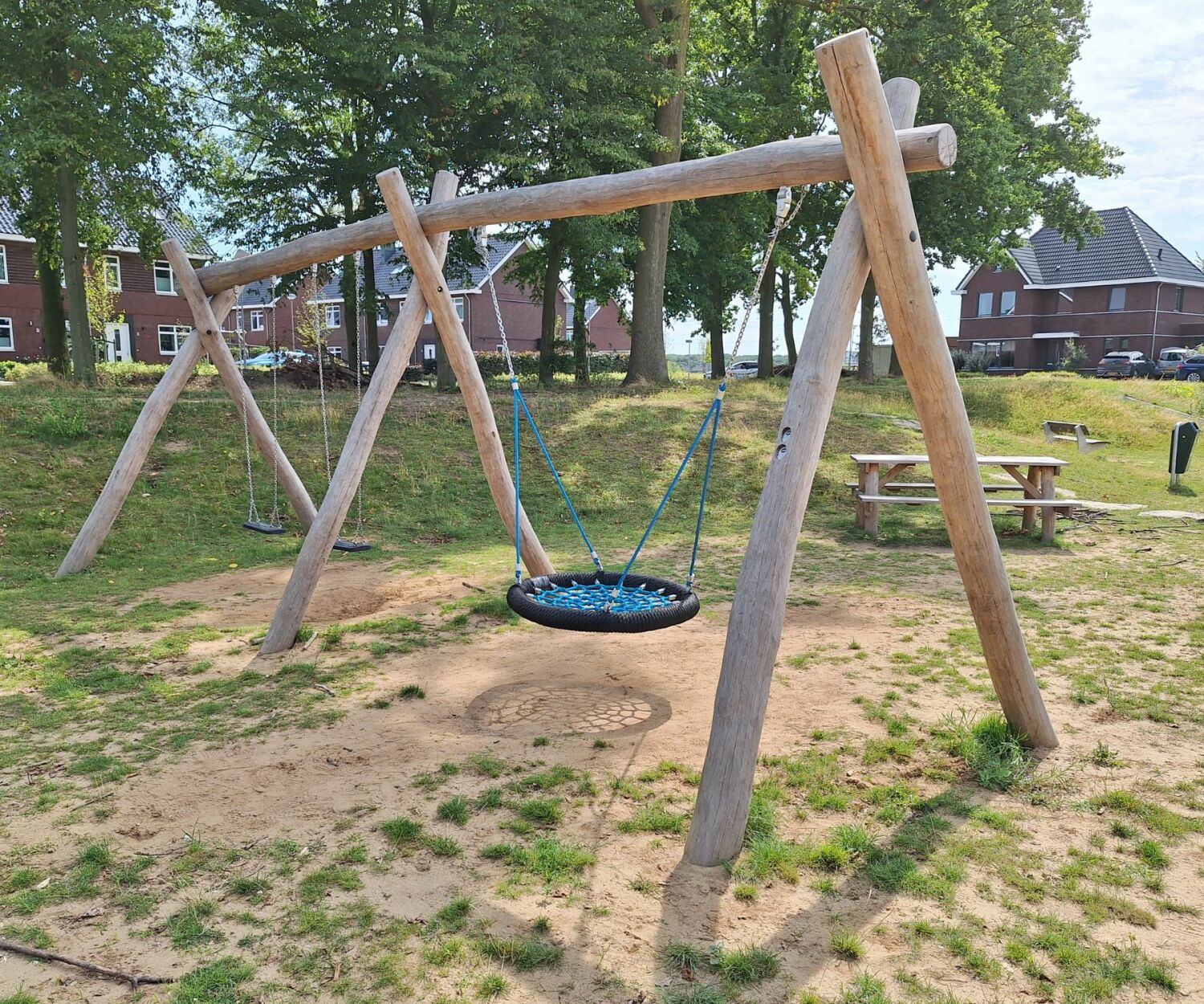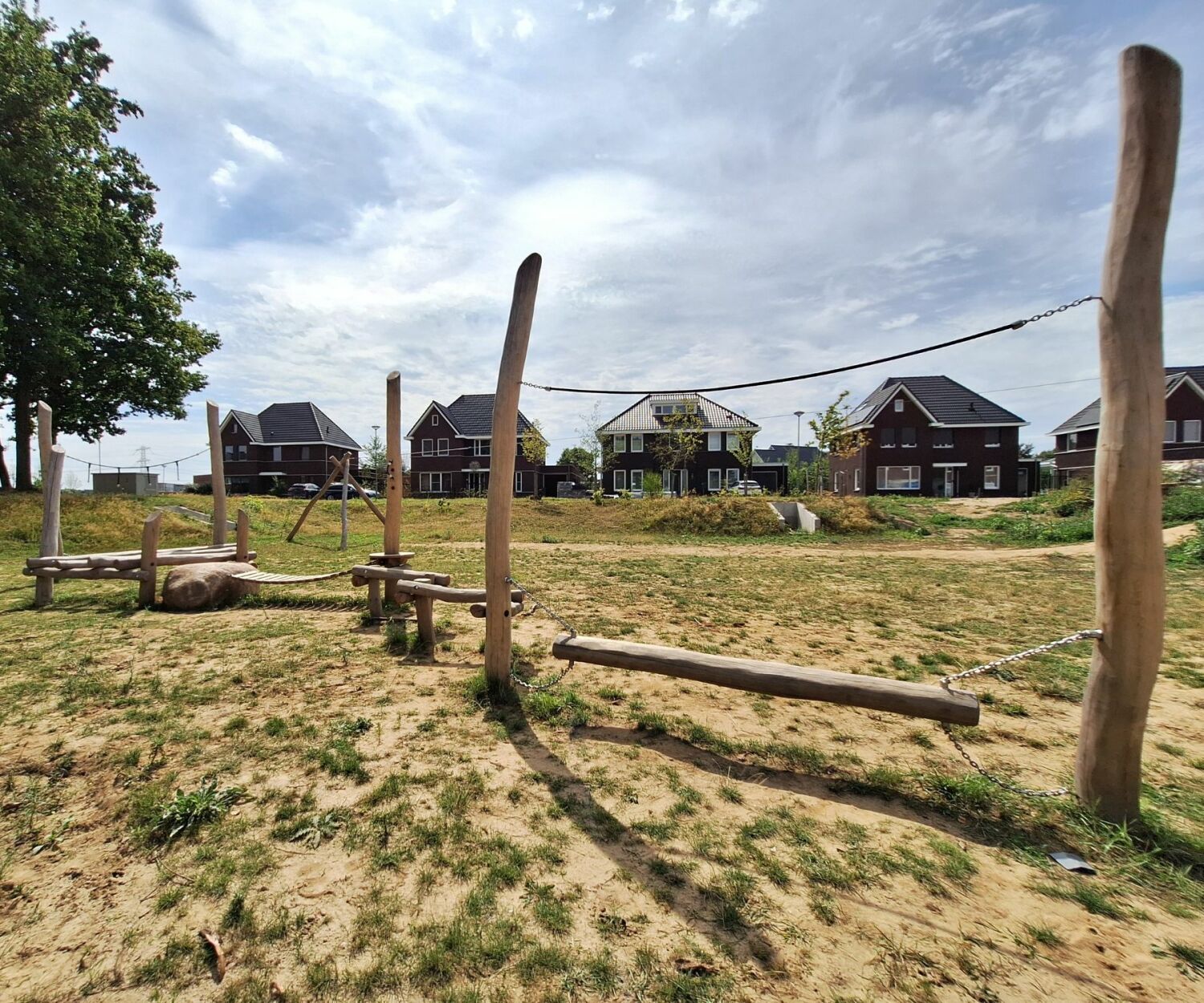 De kabelbaan die vanaf de bovenrand dwars door het gebied loopt, is een echte blikvanger. Samen met het speelparcours, de grote klimboom, de combischommel en de pannakooi vormt het een speel- en sportaanbod waar iedereen zijn energie kwijt kan.