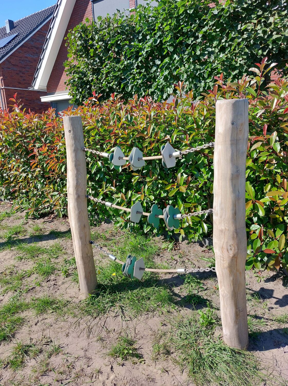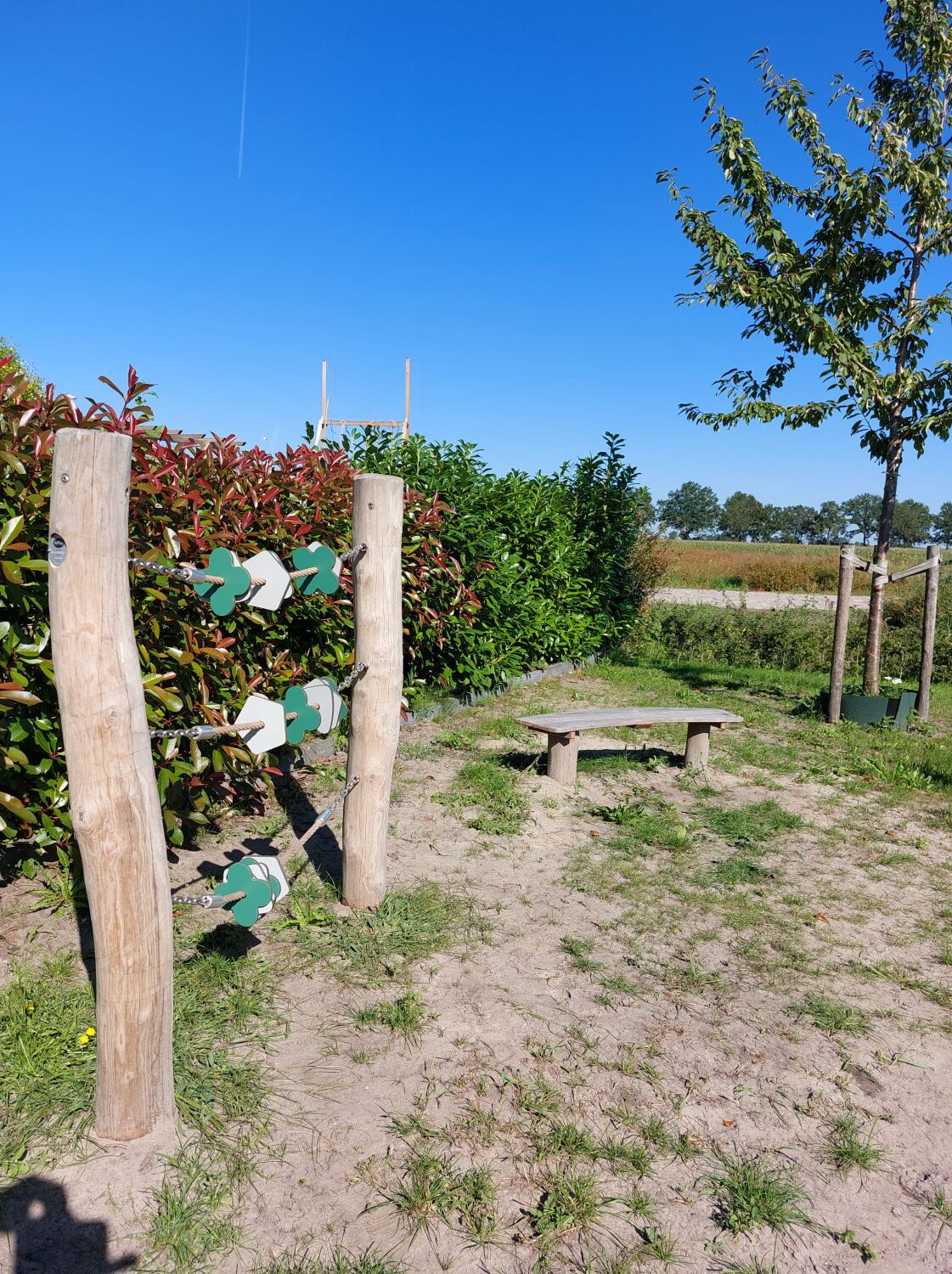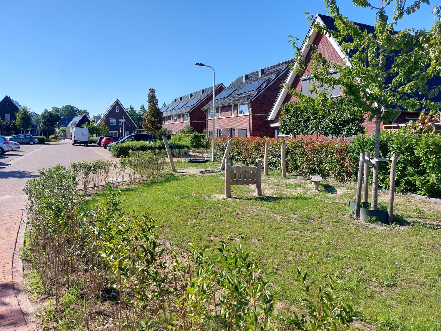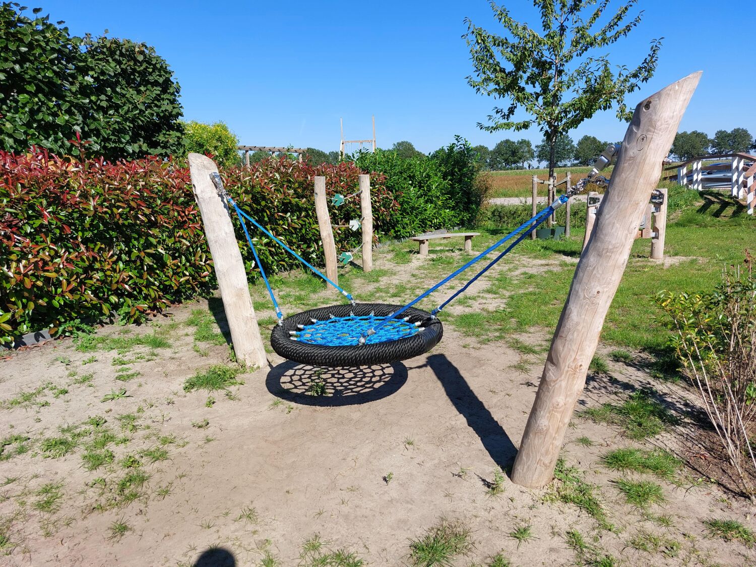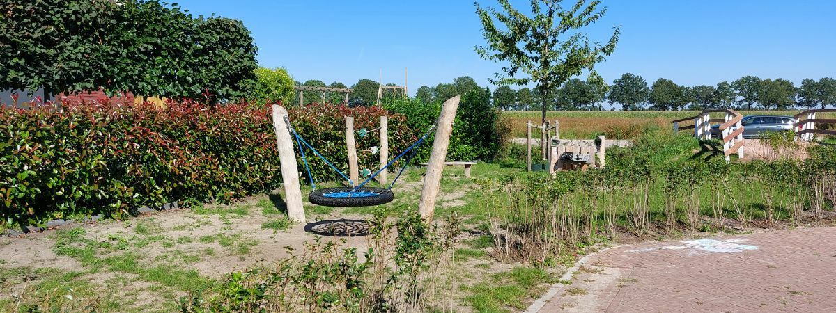 De nieuwe speeltuin ligt dicht bij de huizen, waardoor dit een ideale speelplek is voor de kleinere kinderen. De toestellen die gekozen zijn voor deze speeltuin zijn gemaakt van Robinia hout, waardoor deze mooi aansluiten bij de natuurlijke insteek van de nieuwbouwwijk. De speelplek is ingericht met een Mini vogelnestschommel, Stuurhut Asti en een telraam en voor de ouders is er nog een bankje toegevoegd.