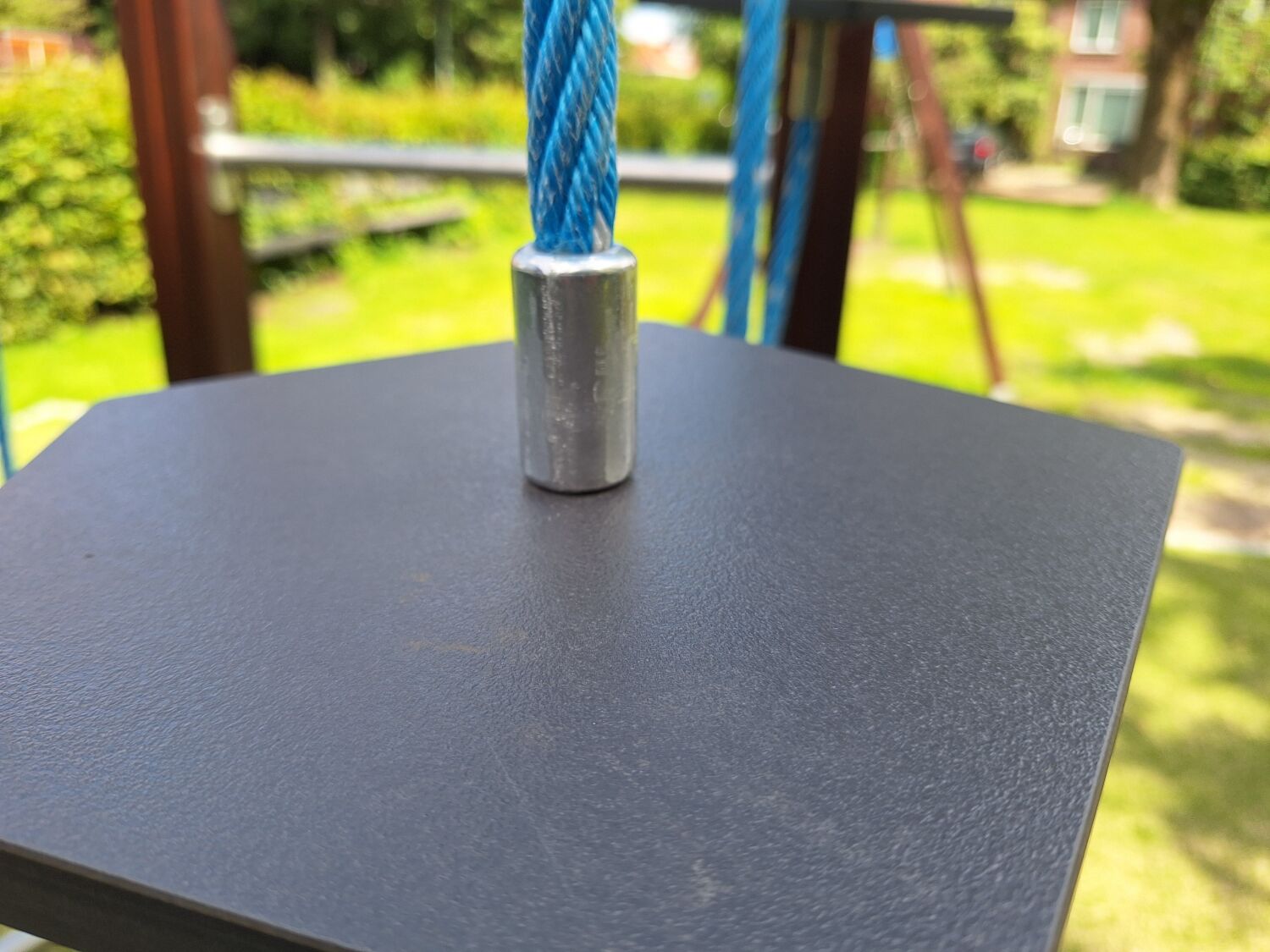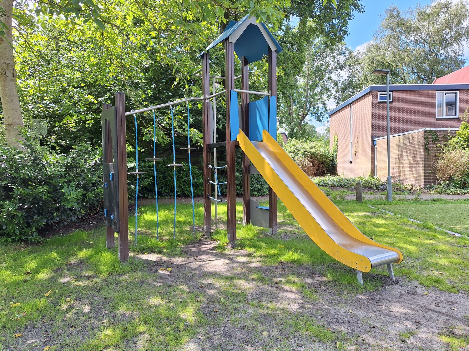 Naast de specifieke wensen voor de speeltoestellen was er ook een eis omtrent de ondergrond. De houtsnippers die onder de oude speeltoestellen lagen waren niet onderhoudsvriendelijk en ze zochten hier dus een andere oplossing voor. Voor het nieuwe ontwerp is er gekozen voor een combinatie van natuurlijke gras, voor speeltoestellen met een valhoogte onder de 1,5 m, kunstgras voor de toestellen met een valhoogte boven de 1,5 m en grastegels bij de slijtageplekken. Een onderhoudsvriendelijke speeltuin met speelplezier voor iedereen!