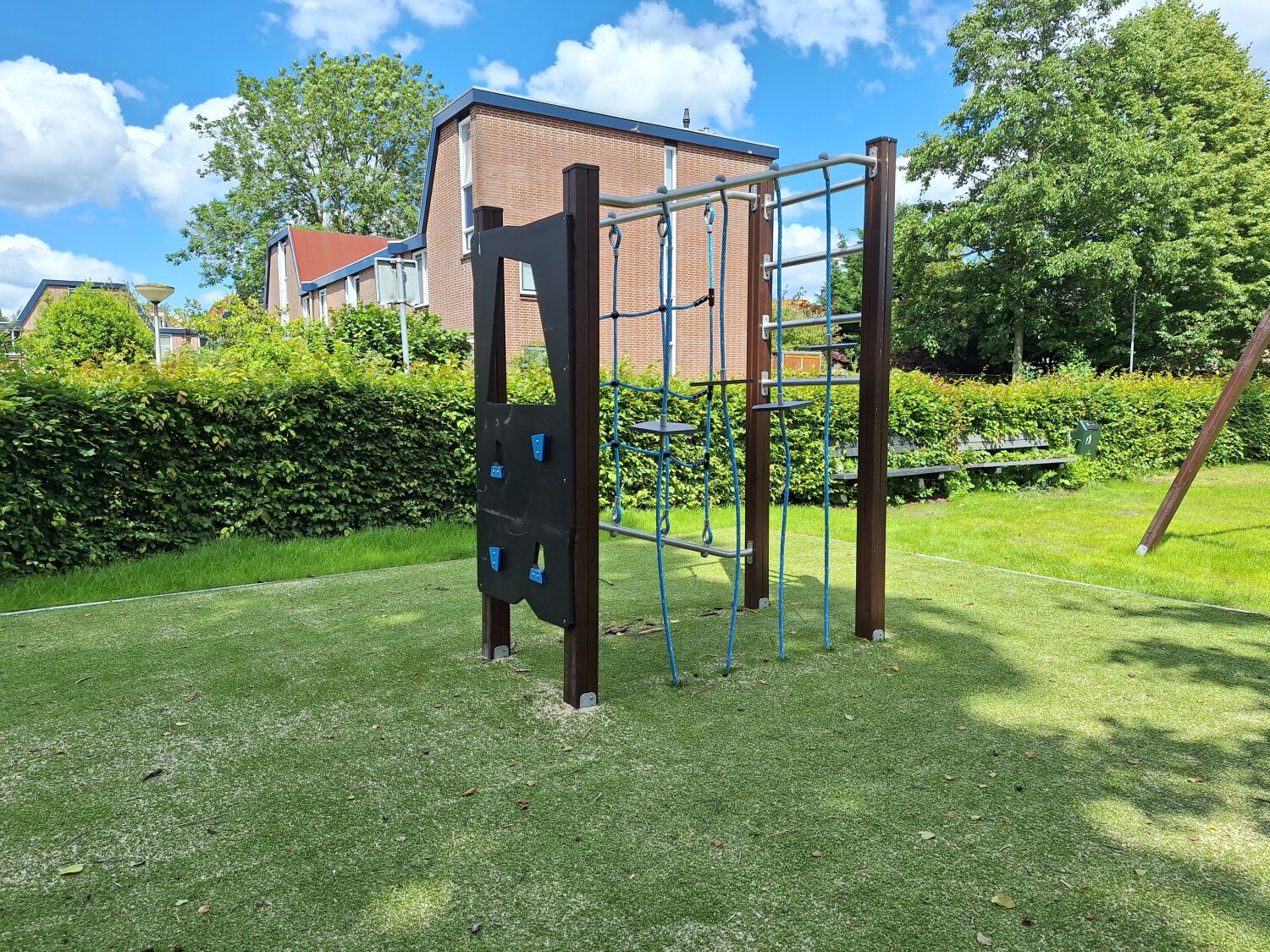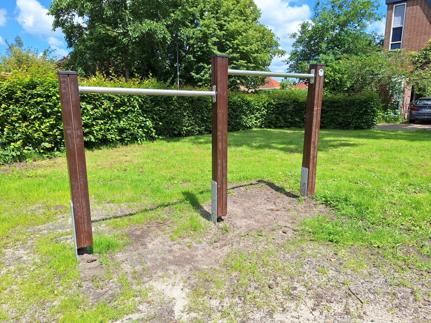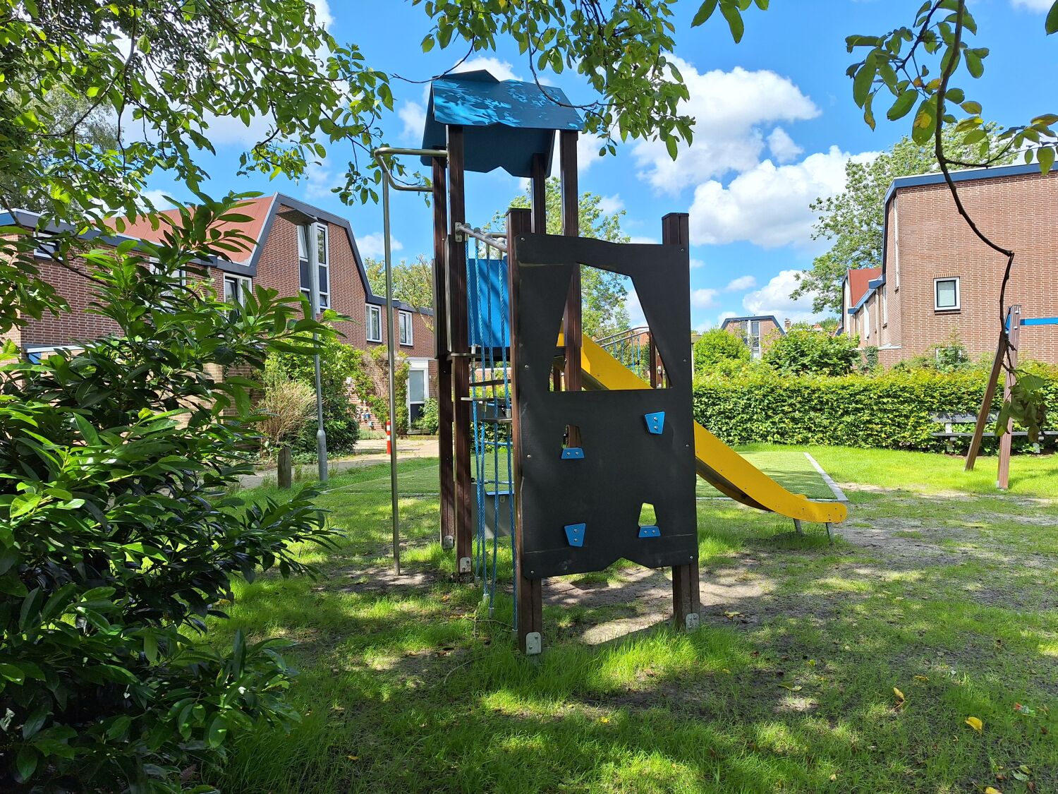 Met deze input zijn we aan de slag gegaan om een ontwerp te maken dat perfect aansluit bij deze wensen en eisen. Het uitgevoerde ontwerp bestaat dan ook uit Verduurzaamd grenen toestellen zoals Speelcombinatie Puck, Klimcombinatie Sander, Dubbele schommel Kaketoe, Duikelrek dubbel Tumble en Veertoestel Paard. De houten uitstraling zorgt ervoor dat de speelplek goed past in de omgeving.