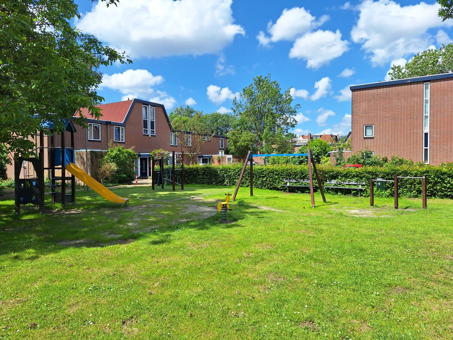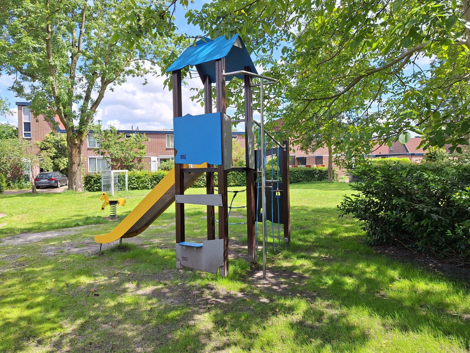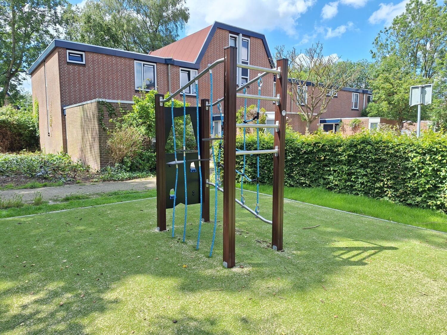 Met deze input zijn we aan de slag gegaan om een ontwerp te maken dat perfect aansluit bij deze wensen en eisen. Het uitgevoerde ontwerp bestaat dan ook uit Verduurzaamd grenen toestellen zoals Speelcombinatie Puck, Klimcombinatie Sander, Dubbele schommel Kaketoe, Duikelrek dubbel Tumble en Veertoestel Paard. De houten uitstraling zorgt ervoor dat de speelplek goed past in de omgeving.
