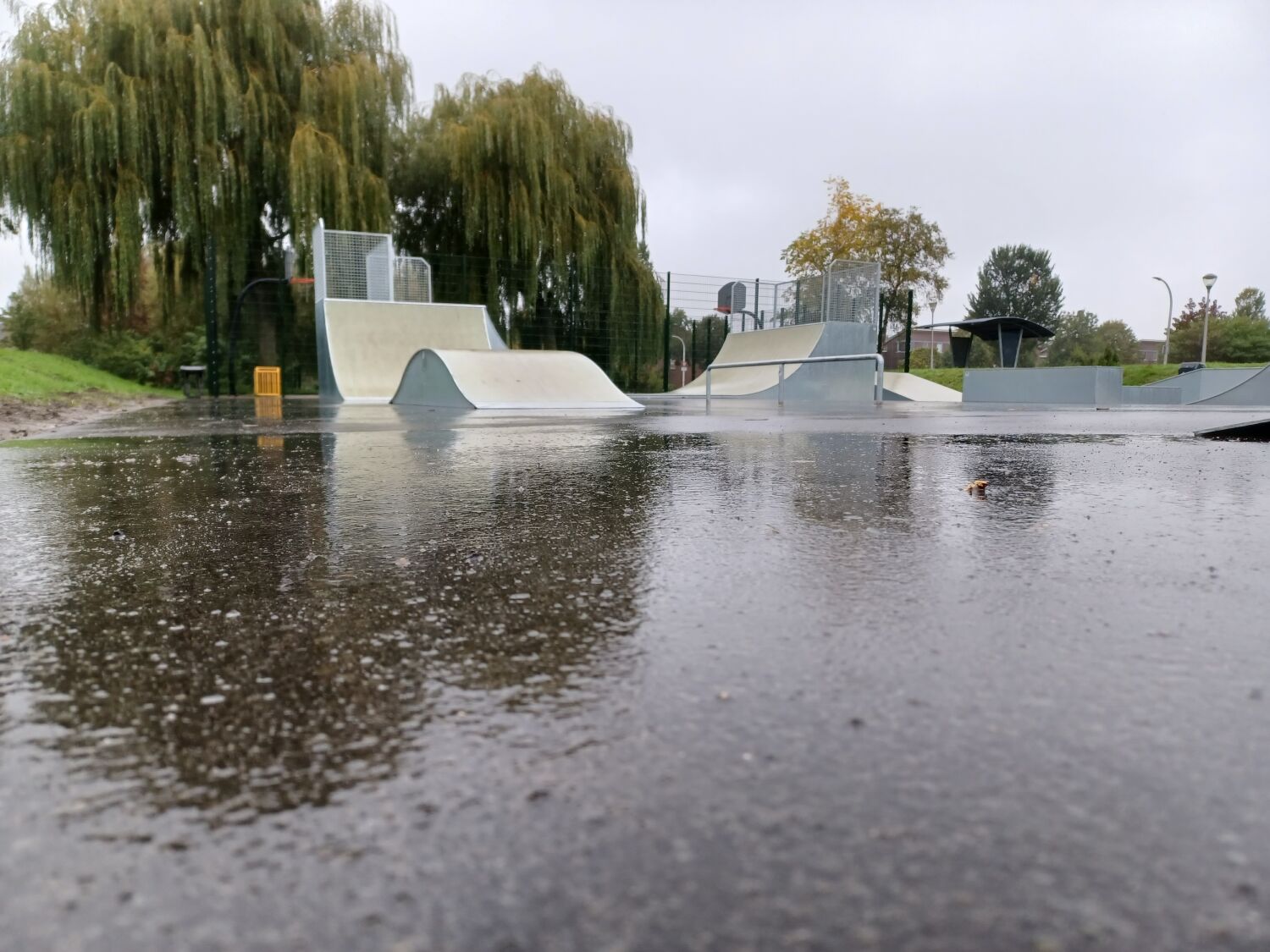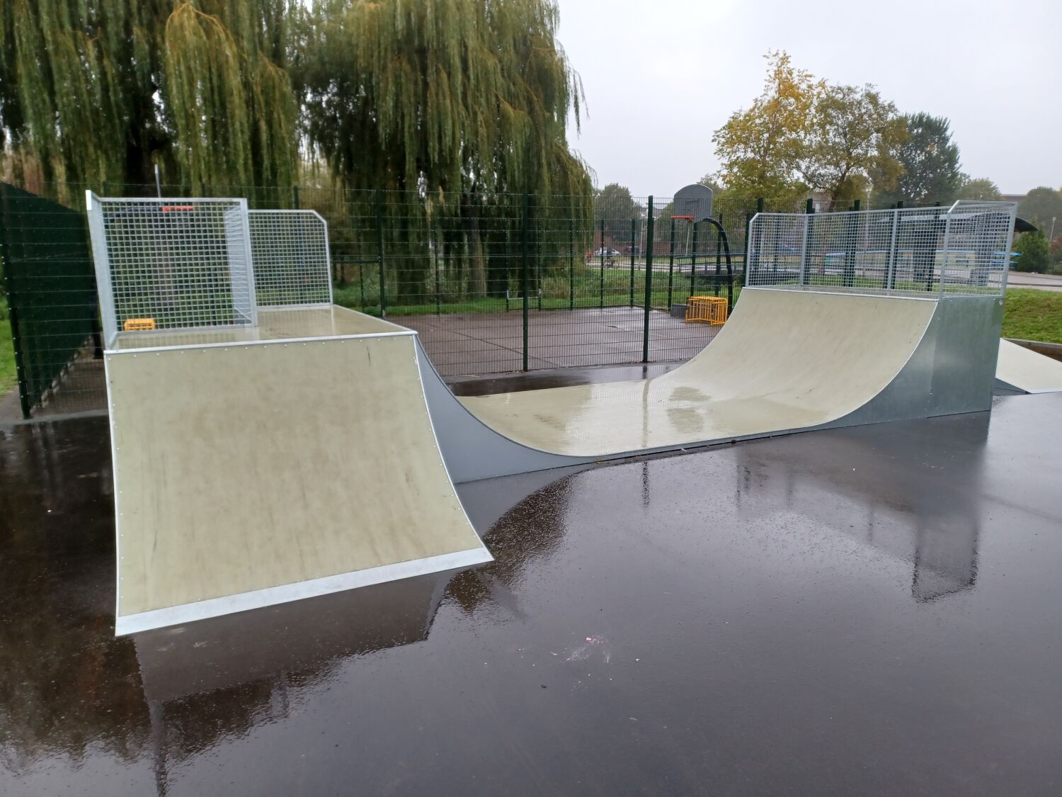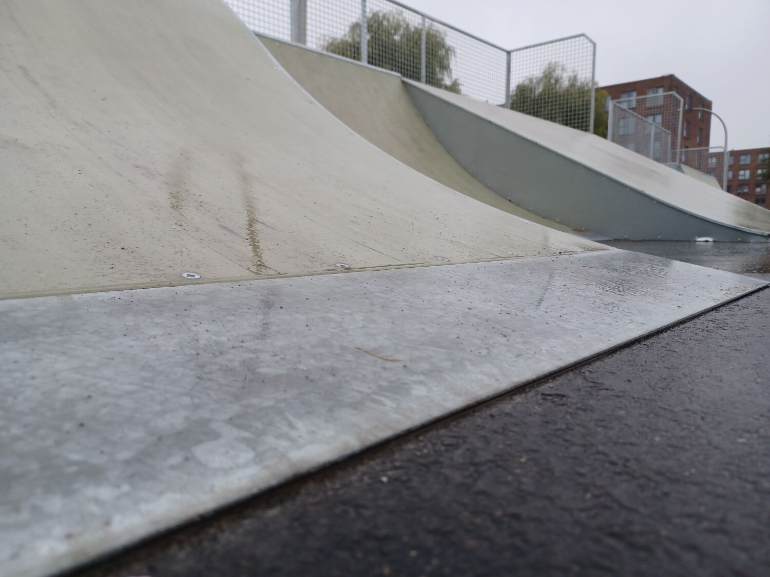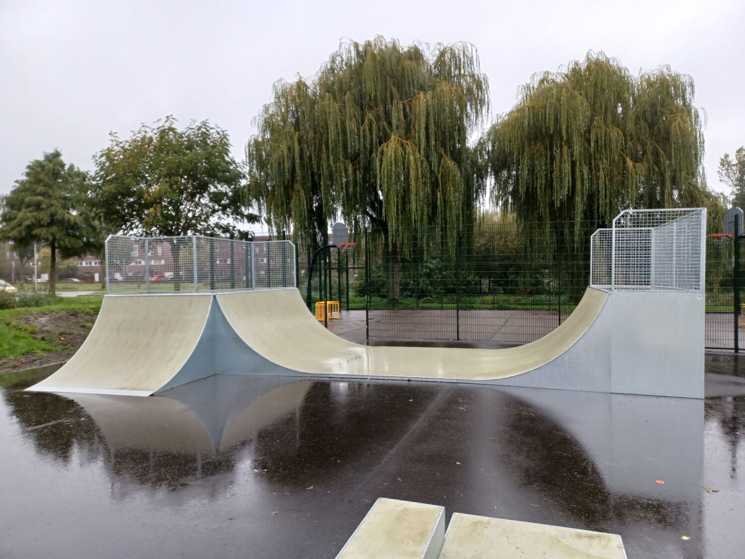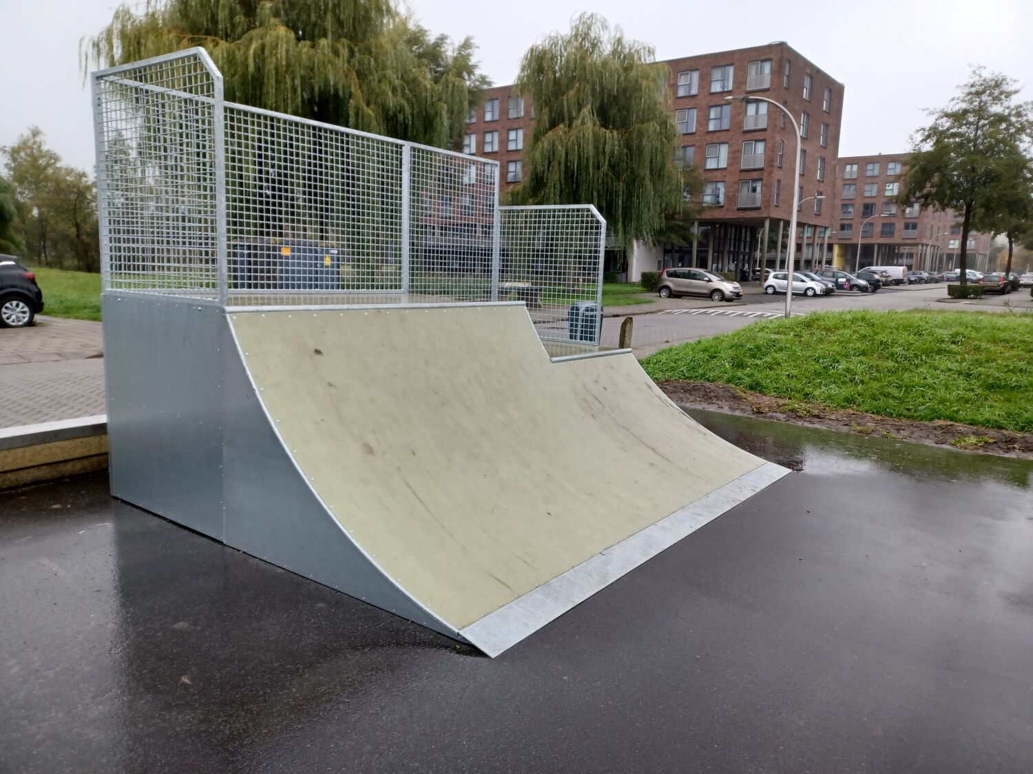 Gelukkig hebben wij dit in ons ontwerp mooi mee kunnen nemen! Er is een verscheidenheid aan skatetoestellen gemaakt en geplaatst. Deze toestellen bestaan uit een stalen frame met polyester platen. Voor het nieuwe asfalt heeft de gemeente zelf een partij ingeschakeld, die een nieuwe, strakke ondergrond verzorgde. Zo heeft het nieuwe park een strakke en stoere look gekregen.