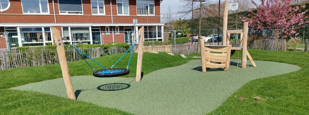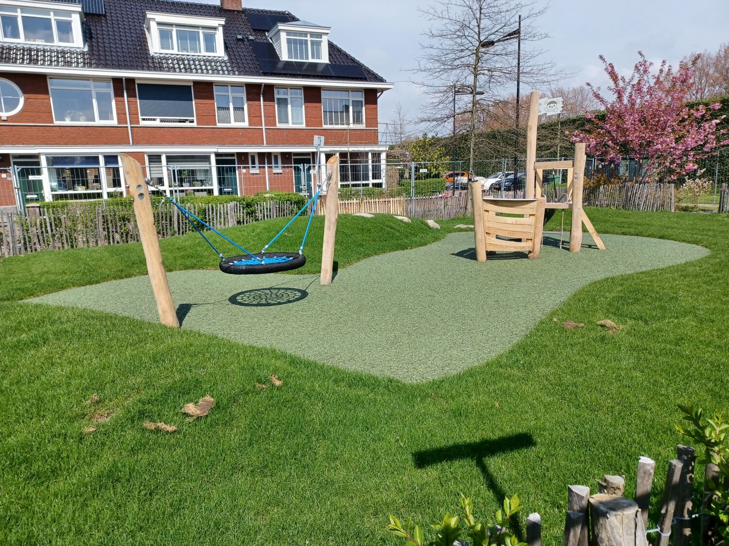 Bureau Speelplan heeft voor deze speelplek voor een mooie kunststof ondergrond gezorgd, die het plaatje helemaal compleet maakt. In mei 2023 hebben wij de speelplek opgeleverd. Het project heeft in zijn totaliteit ongeveer 3 tot 4 maanden geduurd.