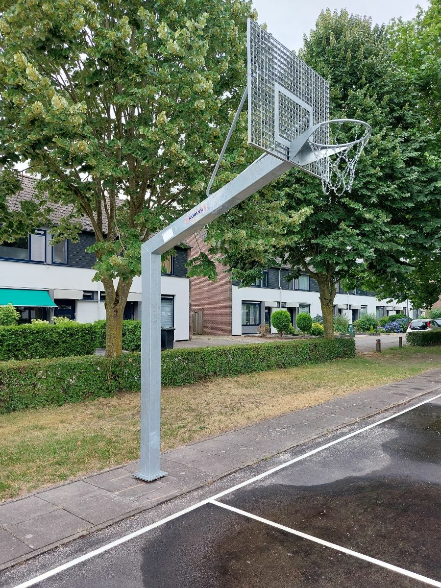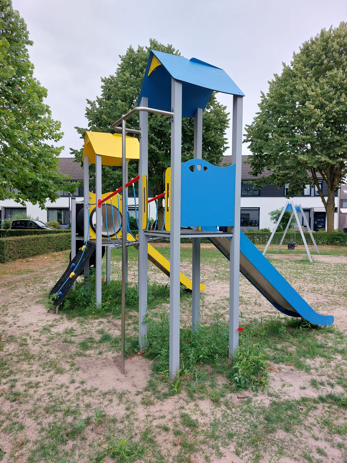 Uiteindelijk zijn de volgende speeltoestellen geplaatst: Speelcombinatie Liz, Dubbele schommel Vink (mét box schommelzitje voor de kleinste kinderen) en een Basketbalpaal. Ook hebben we het asfvalt van het voetbalveldje mogen renoveren en een nieuwe belijning gegeven.