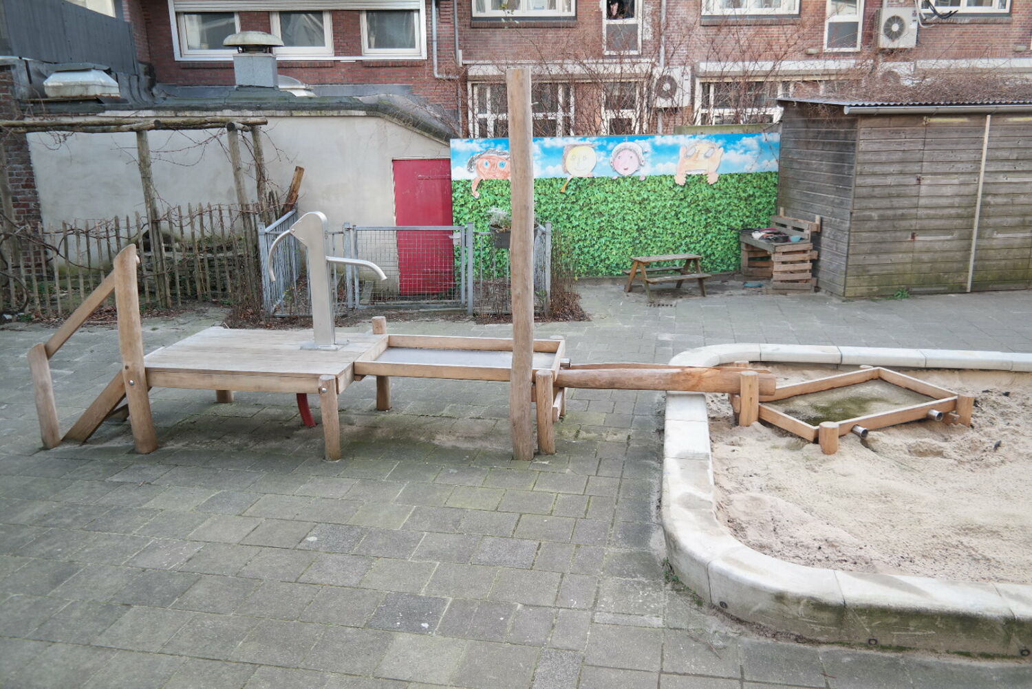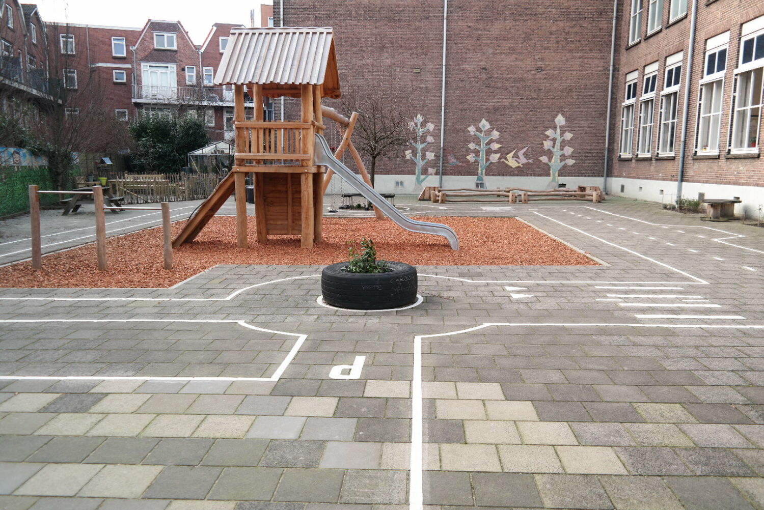 De ‘’groenjuf’’ van de school had ook nog allerlei ideeën betreffende de inrichting van de speelplek, dus samen met haar hebben we het uiteindelijk ontwerp uitgetekend. En daarna natuurlijk ook uitgevoerd!