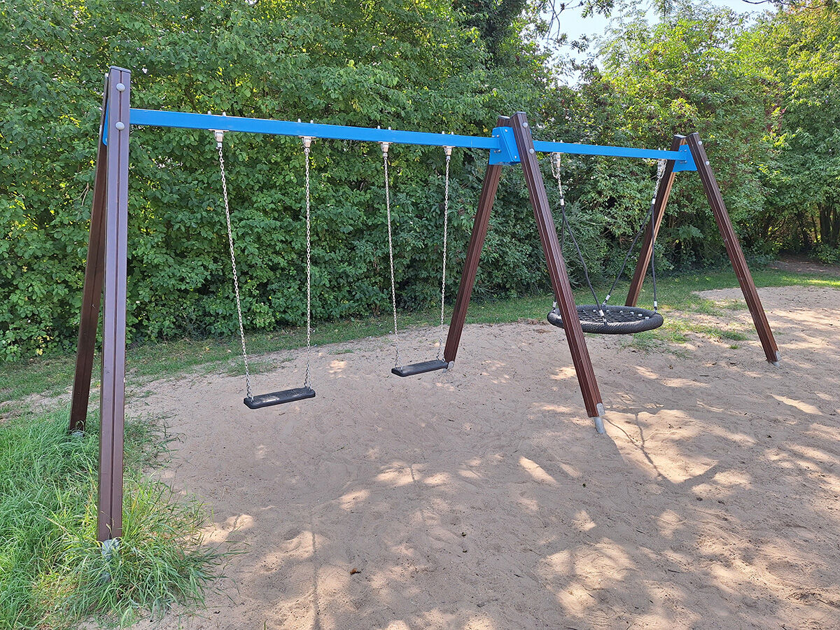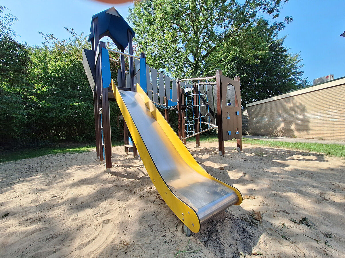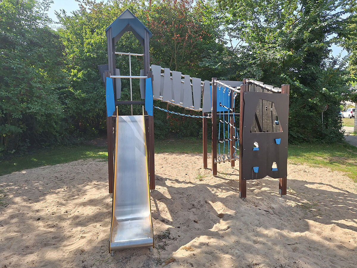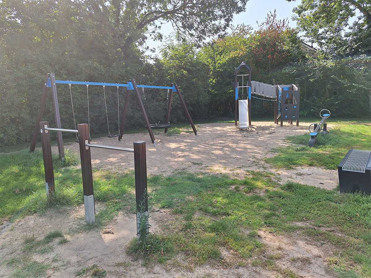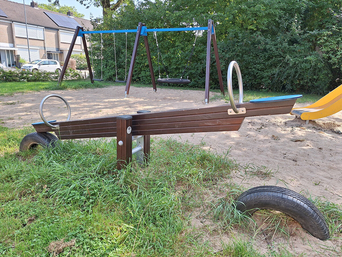 De speelplek is uitgerust met een Duikelrek dubbel Tumble, een Rechte Wip en een Combischommel Pauw met zowel een vogelnestmand als twee klassieke zitjes. Het hoogtepunt is Speelcombinatie Saar, een echte eyecatcher. Deze bestaat uit verschillende klimopties, zoals een klimnet, klimwand, ladder en klimtouw. De touwbrug tussen de platforms zorgt voor extra spanning, en met de brandweerstang kunnen kinderen op een stoere manier naar beneden glijden.