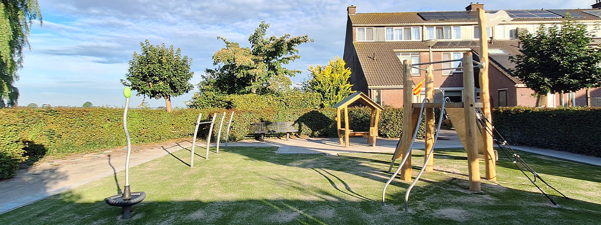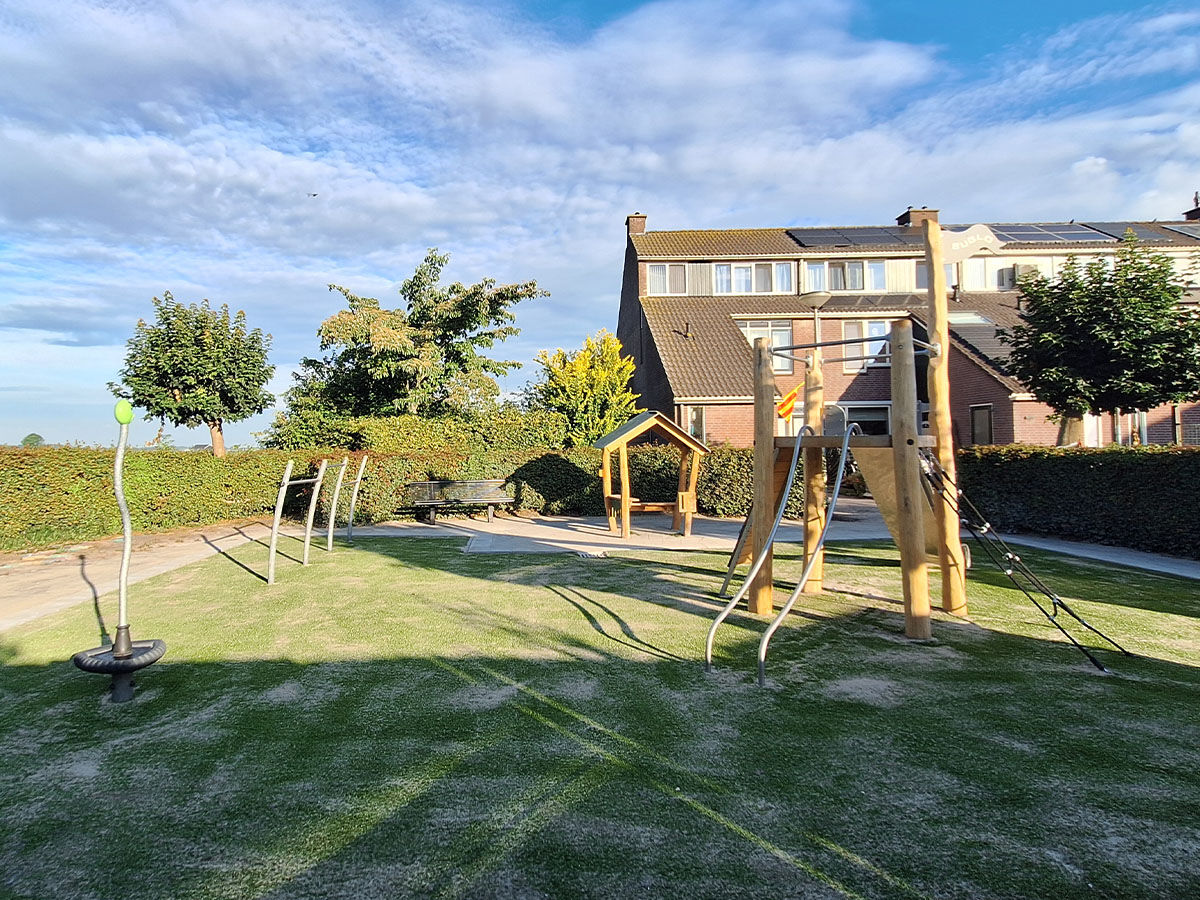 Duurzaamheid stond centraal bij de uitvoering. We hebben de bestaande bank verplaatst naar een logische nieuwe plek en zowel de klimrekstok als de spinner hergebruikt. Door deze herinzet van materialen is er efficiënt omgegaan met middelen én is de speelplek herkenbaar gebleven voor de kinderen uit de buurt. Zo is een toekomstbestendige en gedragen speelvoorziening gerealiseerd.