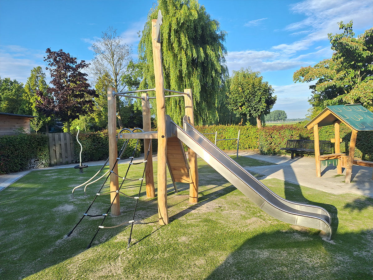 Het gekozen ontwerp combineert deze wensen in een doordachte en speelse inrichting. Met de nieuwe speelcombinatie met hoge glijbaan kunnen kinderen zich fysiek uitleven. Het behouden van het duikelrek zorgt voor vertrouwdheid, terwijl de natuurlijke vormgeving zorgt voor een rustige en harmonieuze uitstraling in de omgeving.
