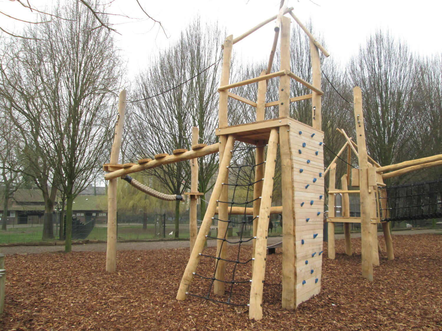Doordat het park een specifieke wens had, hadden wij aan één ontwerp genoeg. Uiteindelijk is er een maatwerktoestel uitgekomen. Dit toestel hebben we de naam Speelcombinatie Apenboom gegeven. In het toestel zijn dus de twee glijbanen van het oude toestel verwerkt en verder is het geheel van Robinia hout gemaakt. Dit geeft een natuurlijke uitstraling, precies waarnaar de opdrachtgever op zoek was. Naast de speelcombinatie is er ook nog een klimpiramide geplaatst. Deze heeft een metalen constructie, maar bestaat voor de rest uit touwen.