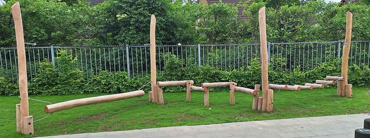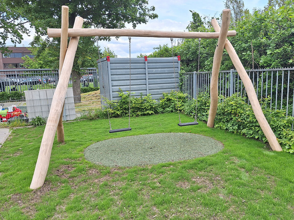 De speelplek van deze kinderopvang heeft een fantastische upgrade gehad! De bestaande speeltoestellen zijn vervangen door moderne en uitdagende structuren die alle kinderen zullen aanspreken. Veiligheid en plezier staan voorop, met de nieuwe schommel, parcourstoestel, blotevoetenpad en klimheuvel. De klimheuvel is voorzien van Tigermulch waardoor deze altijd mooi blijft. Het ontwerp is zorgvuldig samengesteld op basis van de behoeften en wensen van de klant, waardoor het perfect aansluit bij de dagelijkse activiteiten van deze kinderopvang.