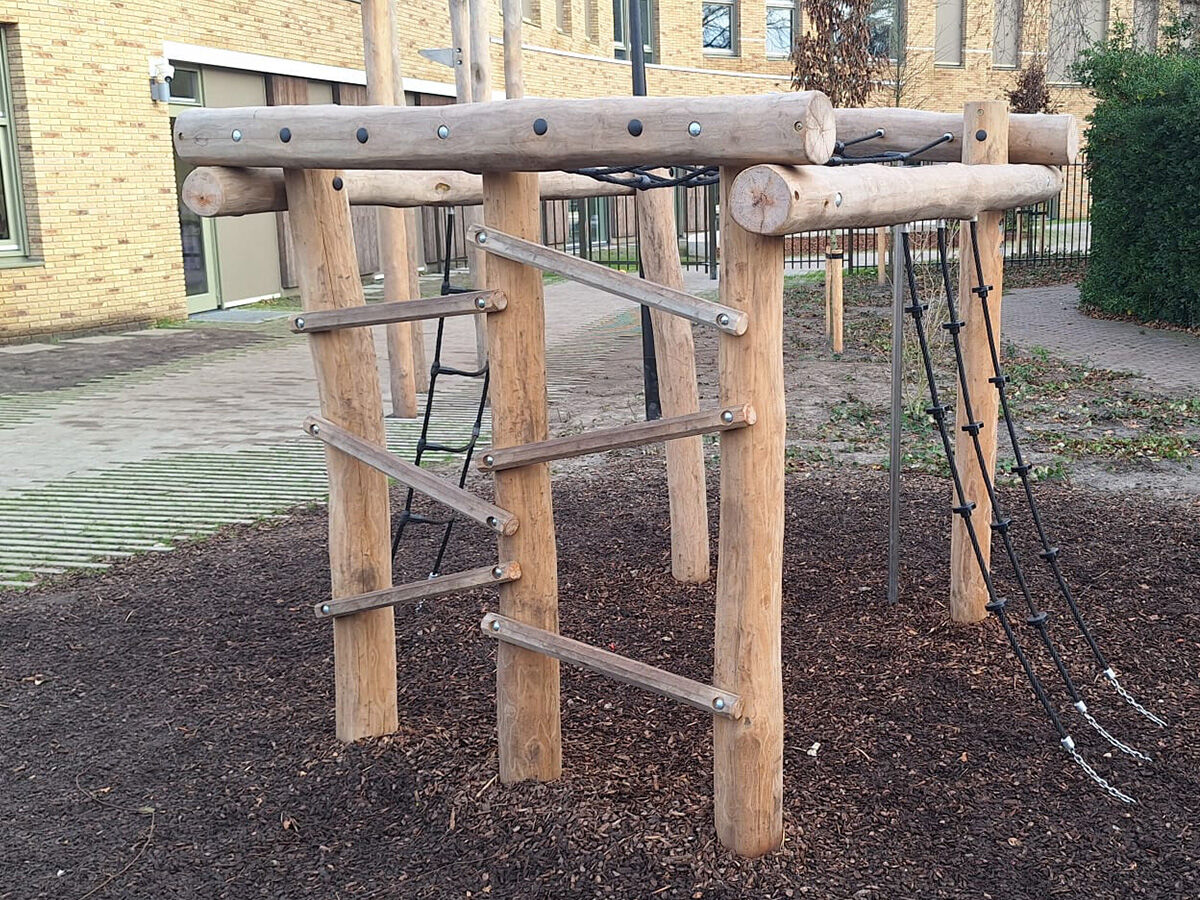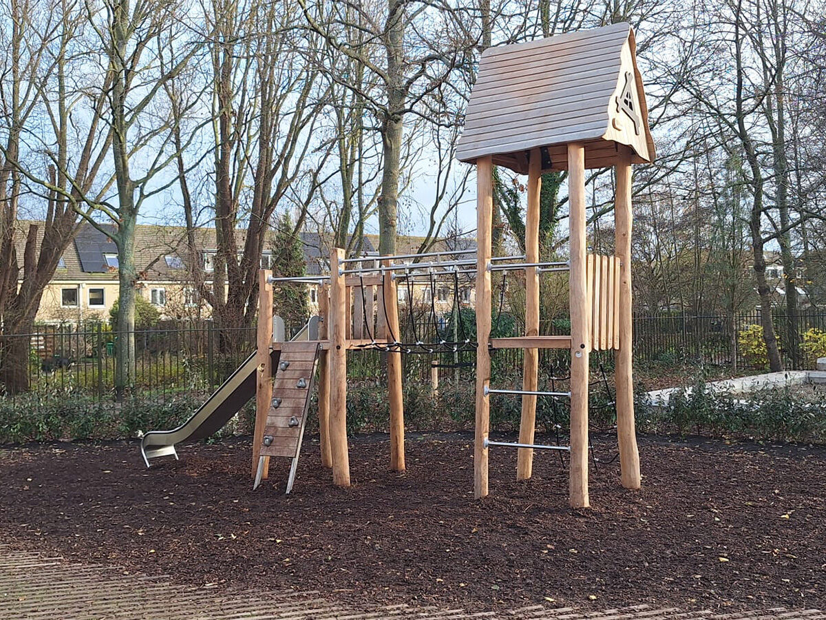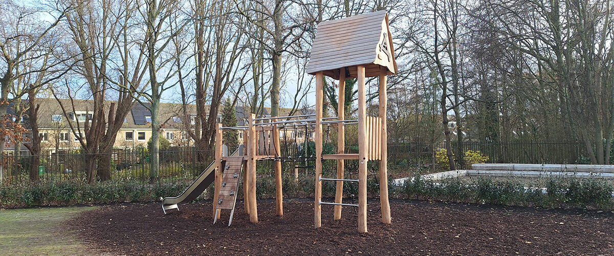 Naast het schoolplein realiseerden we ook de speeltoestellen voor de kinderopvang die in hetzelfde pand is gevestigd. Hierdoor is een samenhangende buitenruimte ontstaan voor kinderen van 0 tot 12 jaar.
