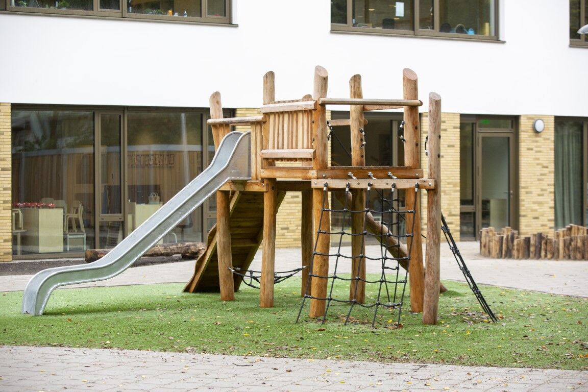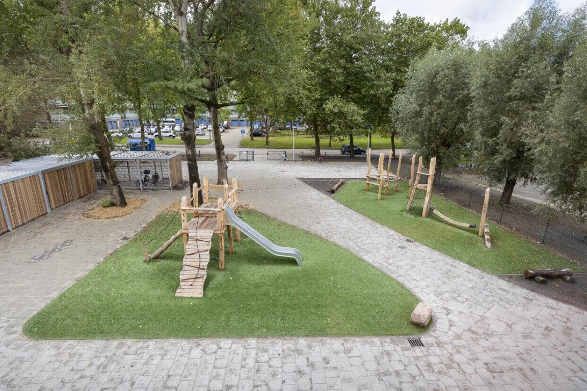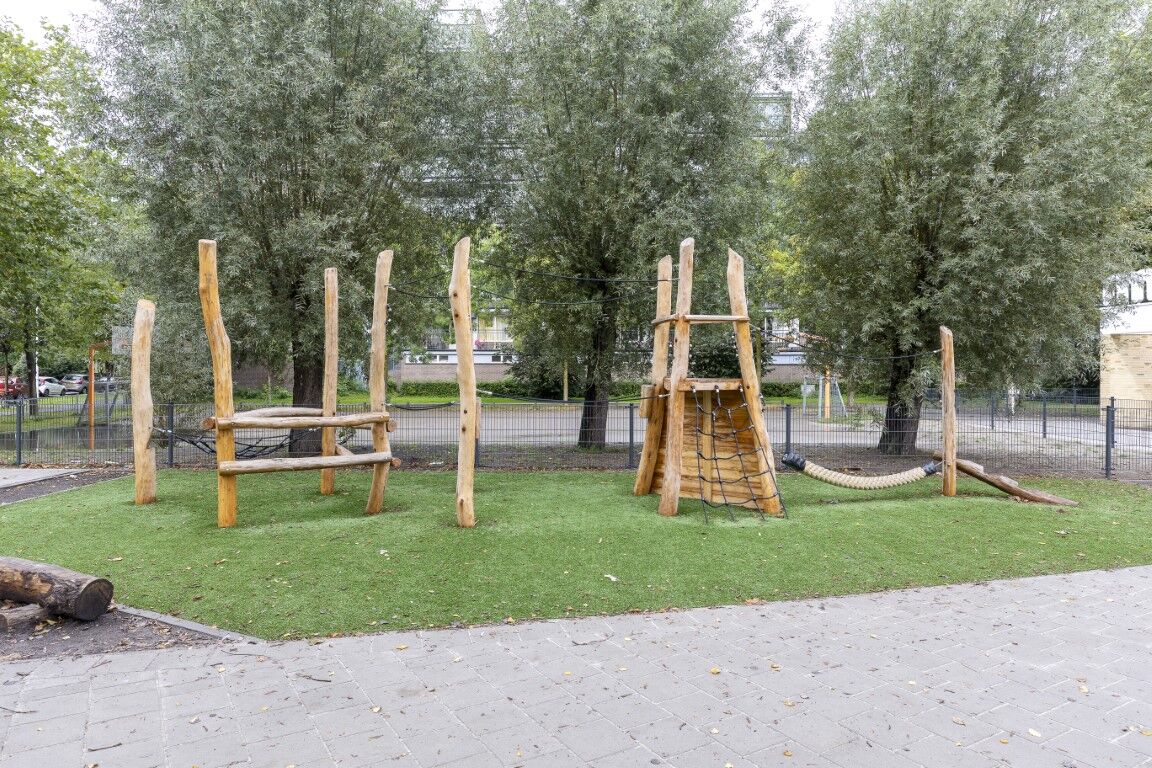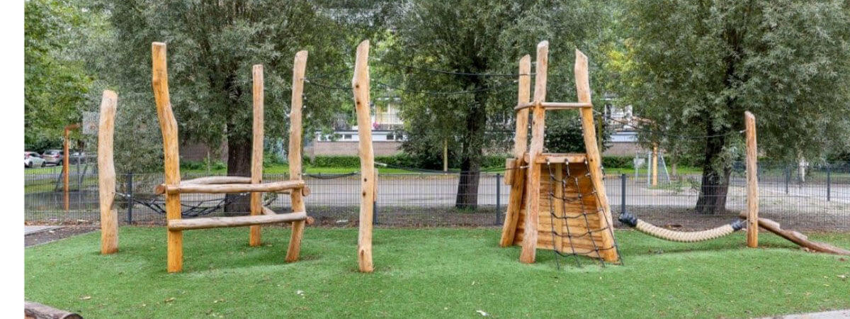 Omdat het een groene speelplek zou moeten worden hebben wij voor speeltoestellen gemaakt van Robinia hout gekozen. Robinia hout heeft een natuurlijk uitstraling, wat mooi past in het groenontwerp van het project. Zo is er een speelcombinatie met glijbaan gekomen, een parcourstoestel en een waterspeelplek. De speeltoestellen brengen verschillende niveaus van uitdaging met zich mee, waardoor ze een brede doelgroep aanspreken. Precies waar deze opdrachtgever naar op zoek was.