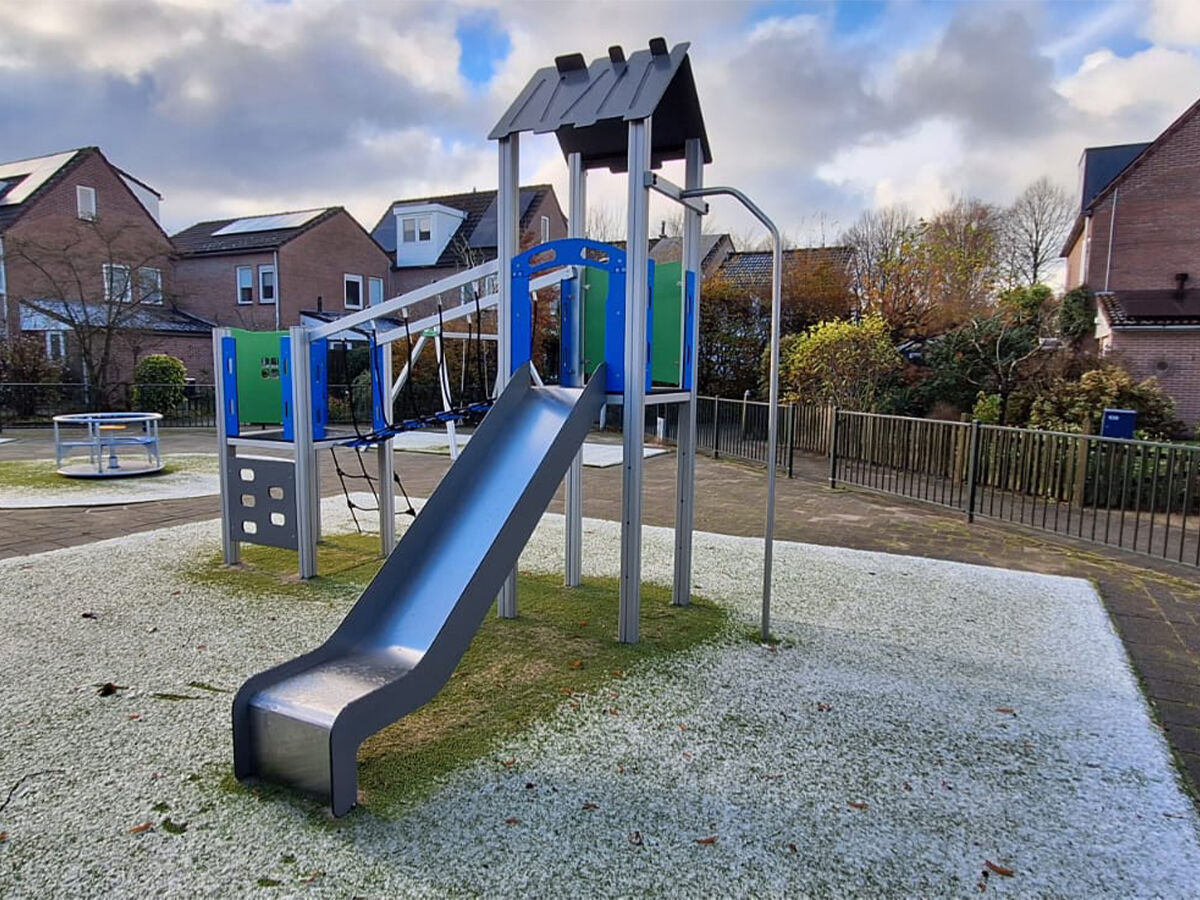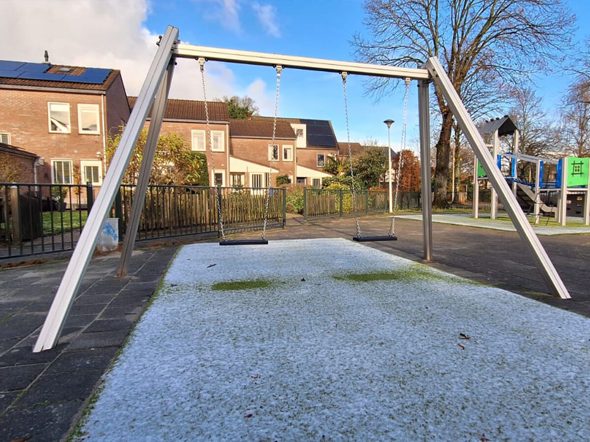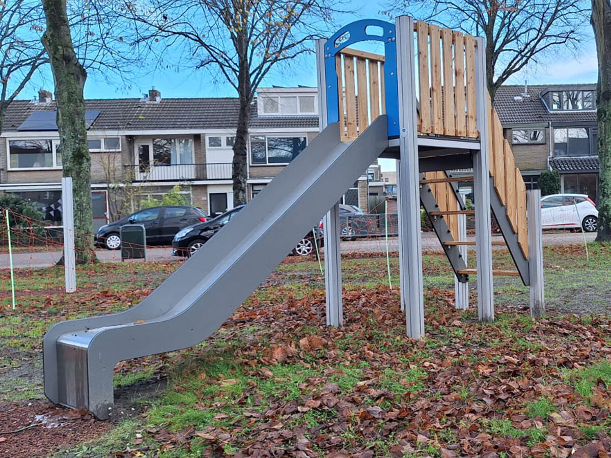 Uiteindelijk kozen de buurtbewoners voor aluminium speeltoestellen met een moderne uitstraling. Op één van de locaties kreeg het gekozen toestel een warme houtlook, waardoor het mooi opgaat in de natuurlijke omgeving. Bij beide plekken gaat het om meerdere toestellen die samen een gevarieerde en uitnodigende speelplek vormen.