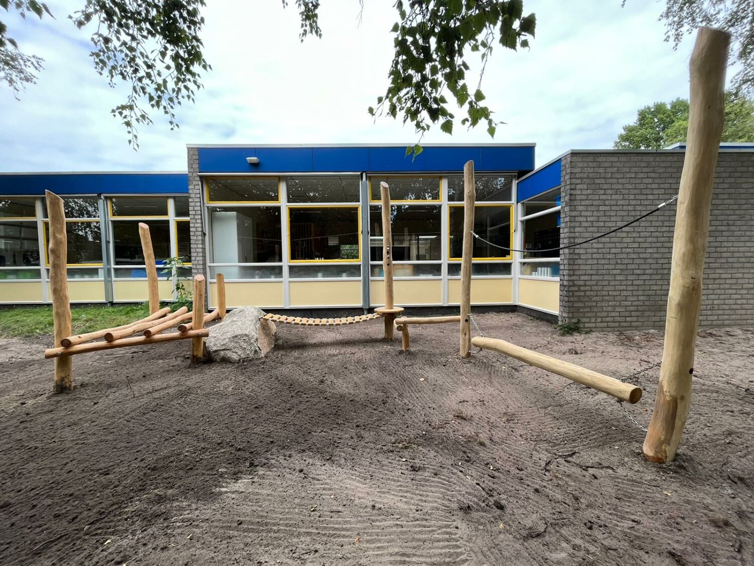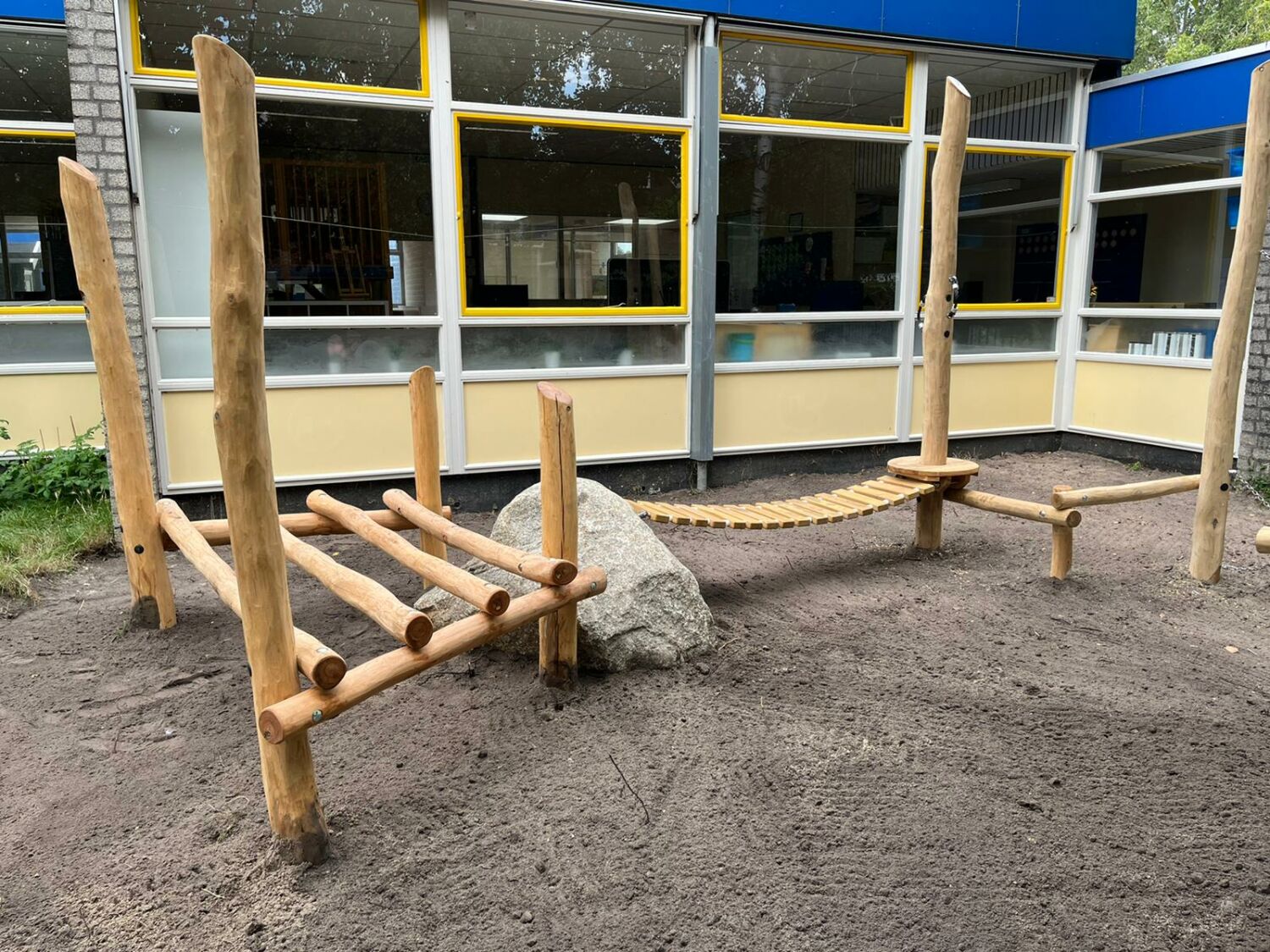 In het plan kwam onder andere naar voren dat de school het schoolplein graag wilde vergroenen. Het werd voor ons al snel duidelijk dat het een speeltoestel gemaakt van Robinia hout zou worden. Deze houtsoort heeft een erg natuurlijk look, wat ervoor zorgt dat het schoolplein een ‘groener’ karakter krijgt.