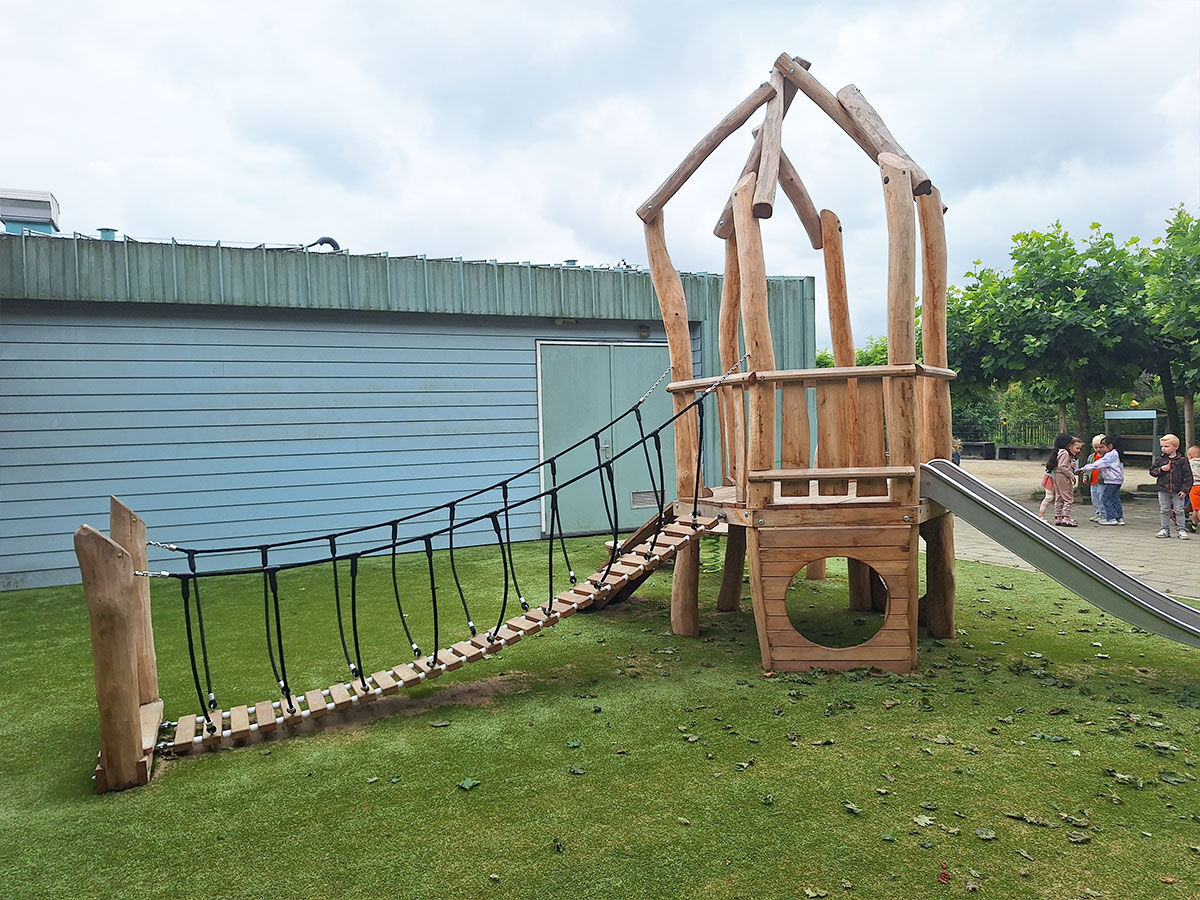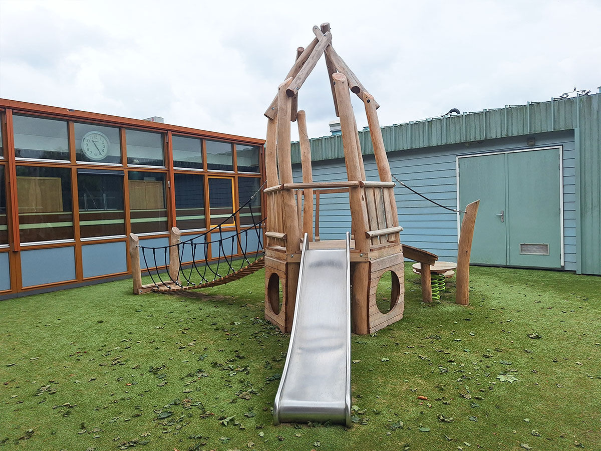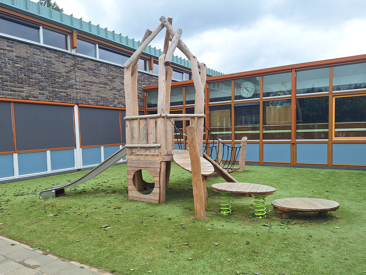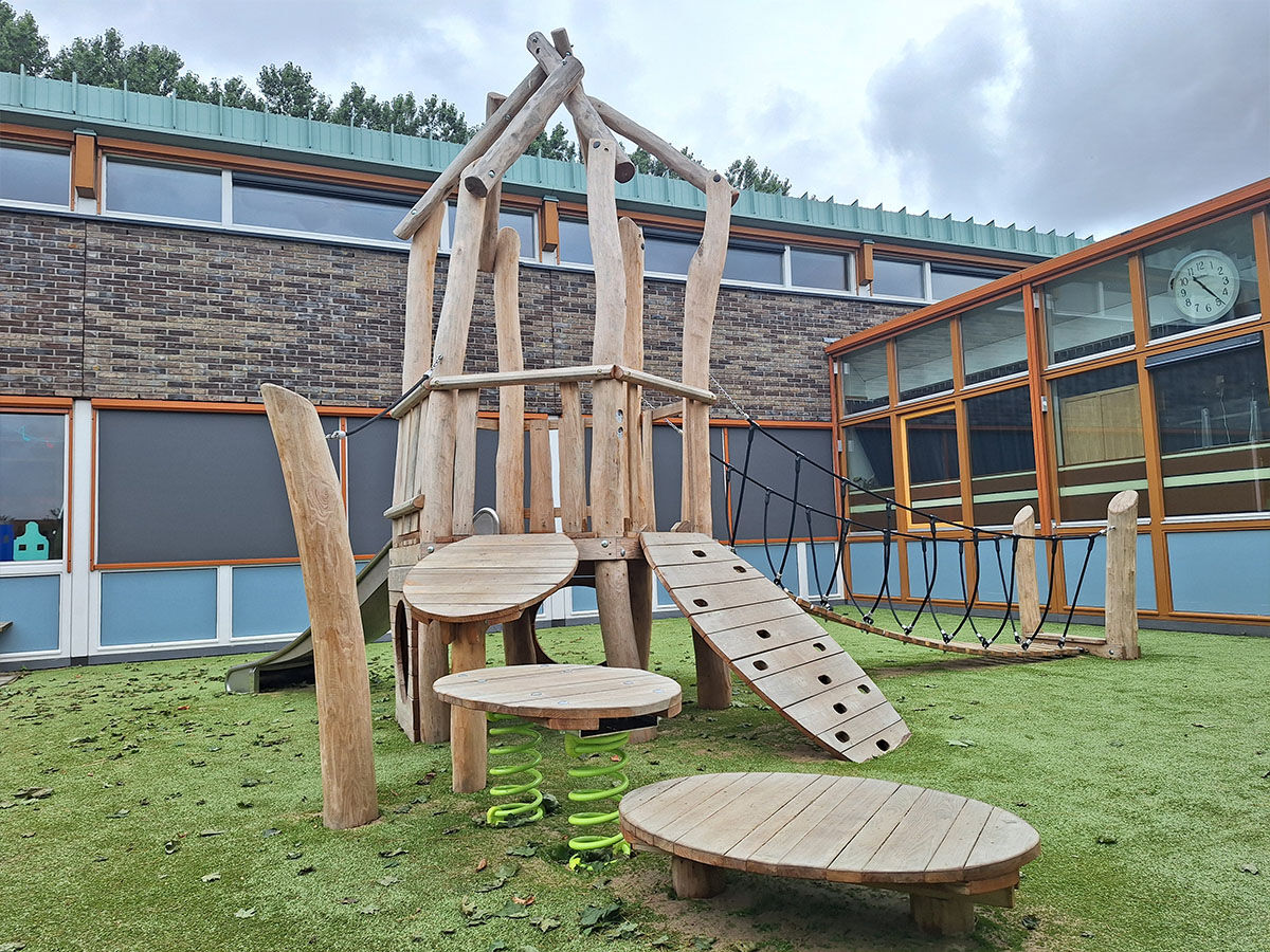 OBS de Toonladder benaderde ons nadat ze een speeltoestel met een natuurlijke uitstraling op onze website hadden gezien dat hen erg aansprak. Samen met de klant bespraken we hun wensen en bezochten we de locatie om de mogelijkheden te bekijken. Het was belangrijk dat het nieuwe speeltoestel geschikt zou zijn voor de onderbouw en dat het meerdere opgangen had, zodat er diverse uitdagingen aanwezig waren voor de kinderen.