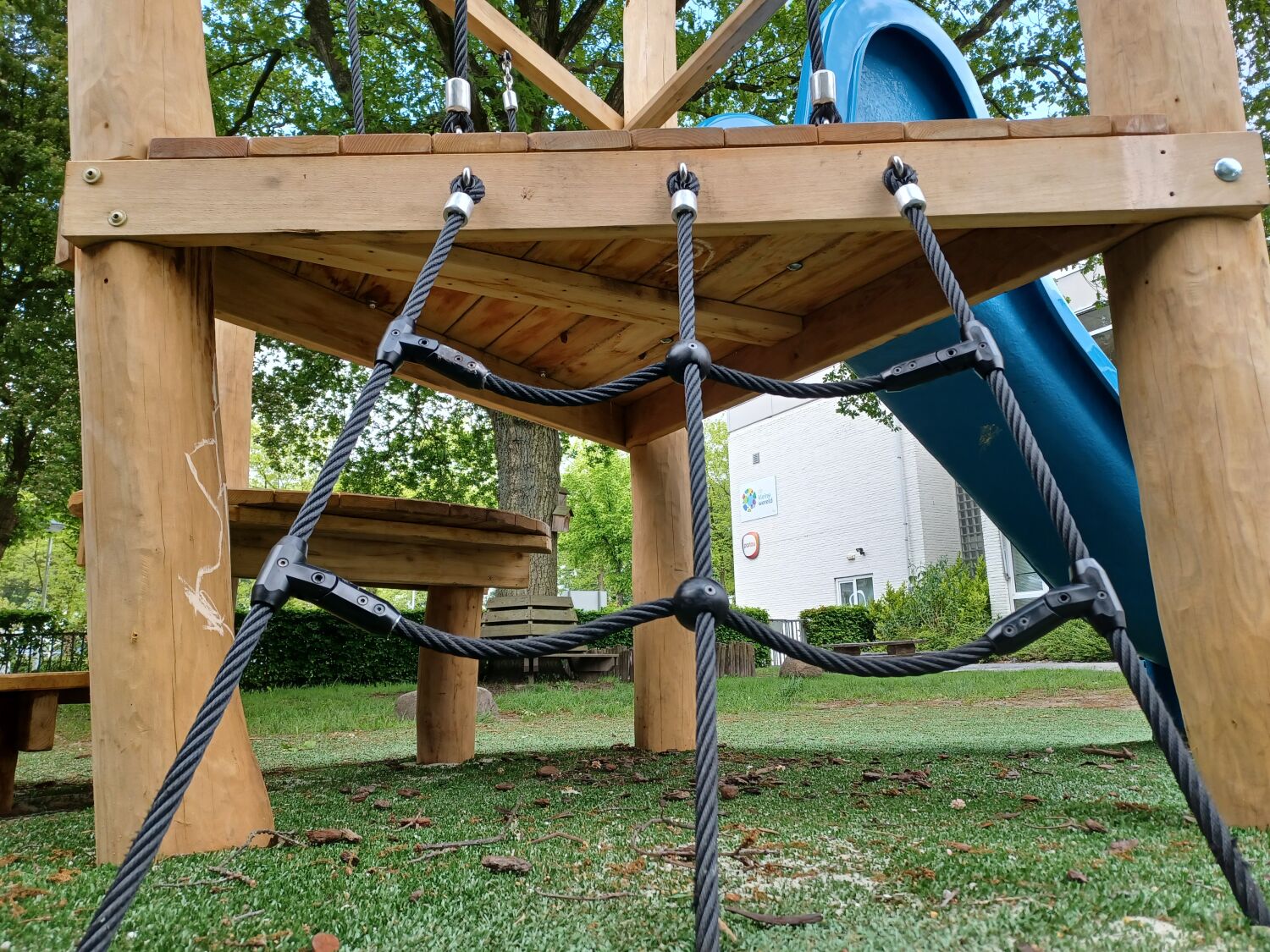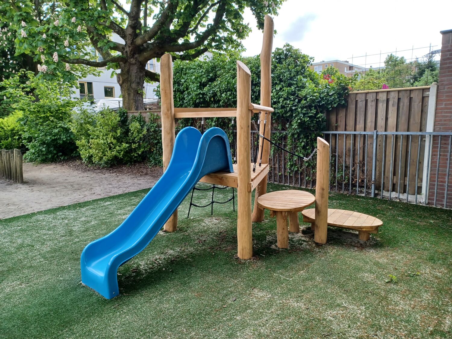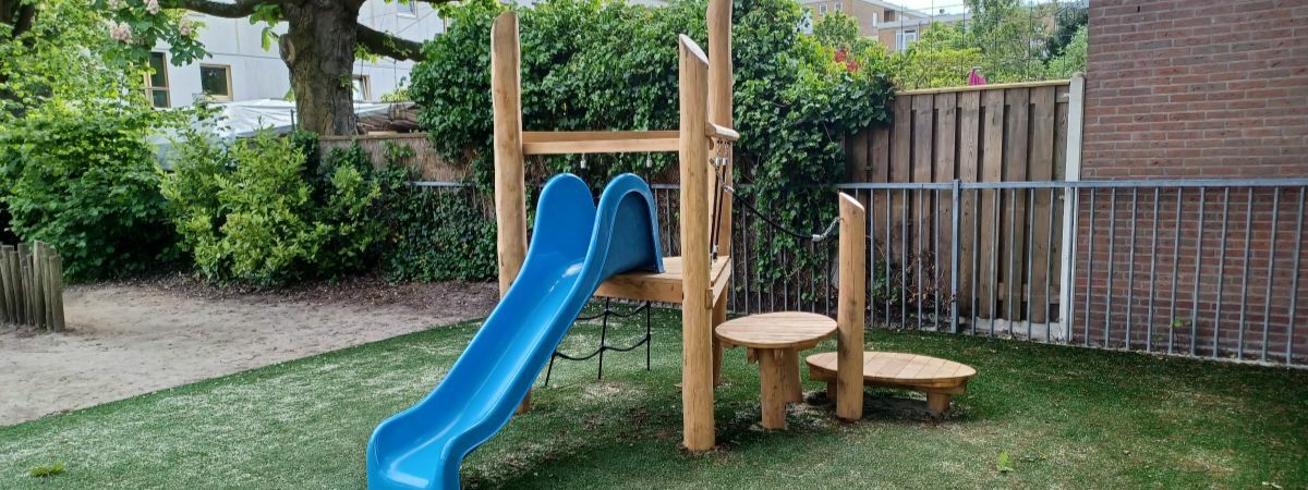 Bij een fijn kinderdagverblijf hoort ook een fijne speelplaats. De speelplaats die bij het kinderdagverblijf in Leiden aanwezig is sloot al heel mooi aan bij de doelgroep. Er was echter 1 speeltoestel aanwezig dat nodig aan vervanging toe was. Het speeltoestel was oud en versleten en sloot niet meer aan op de wensen van de klant. Vandaar dat zij ons inschakelde en vroegen om een nieuw speeltoestel op de plek van het oude speeltoestel te plaatsen.