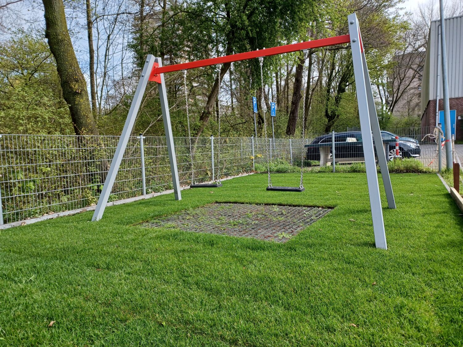 Aangezien al onze speeltoestellen gekeurd worden en van certificaten zijn voorzien zat het met die eerste wens wel goed. We hebber er voor gekozen om voor een glijbaantoren te gaan met een lage valhoogte en voor een dubbele schommel. Twee speeltoestellen die voldoende speelplezier bieden en waarbij het risico op ongelukken laag ligt. Met een ondergrond van gras wordt een eventuele val altijd op een zachte manier gebroken.