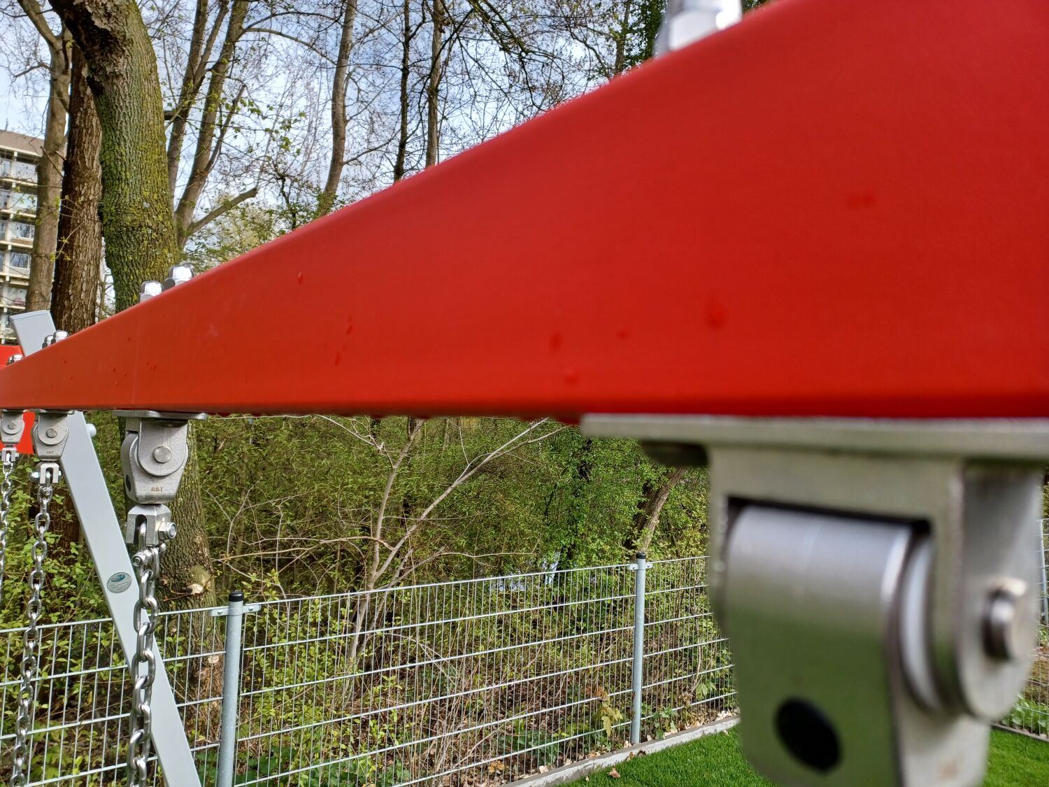 Een leuk extraatje aan speeltoestellen gemaakt van gecoat metaal is dat de coating in verschillende kleuren beschikbaar is. Dit gaf ons de mogelijkheid om de speeltoestellen in dezelfde kleuren te leveren als de kleuren van de huisstijl van RKC WION. Hierdoor vormen de toestellen één geheel met de vereniging.