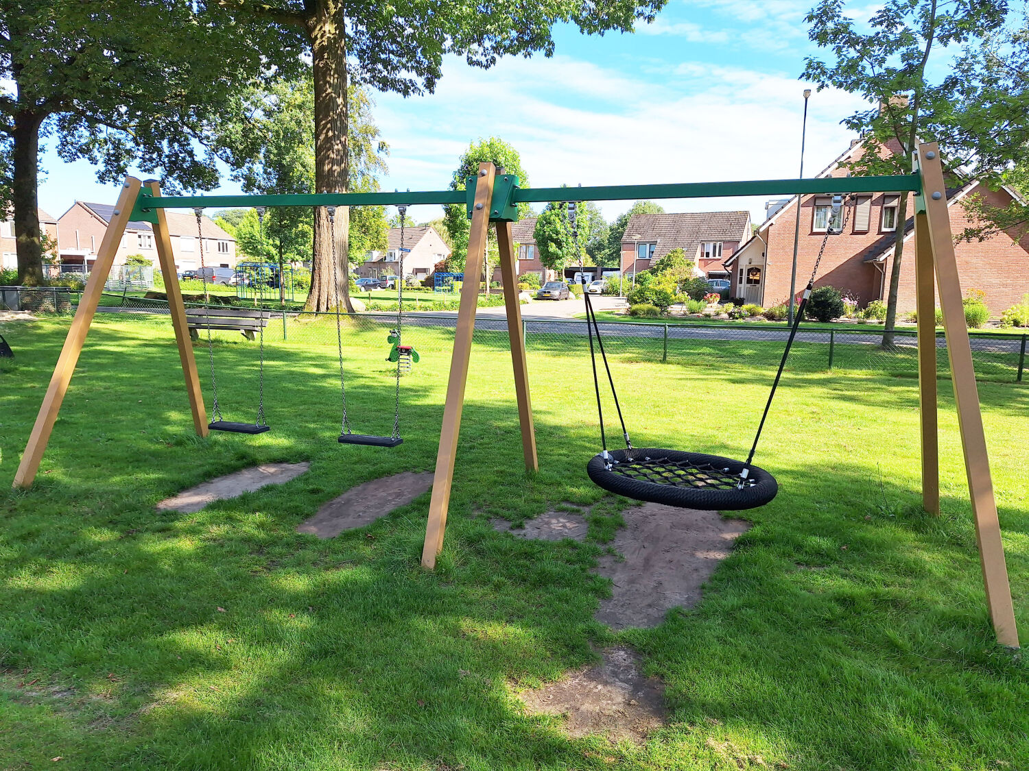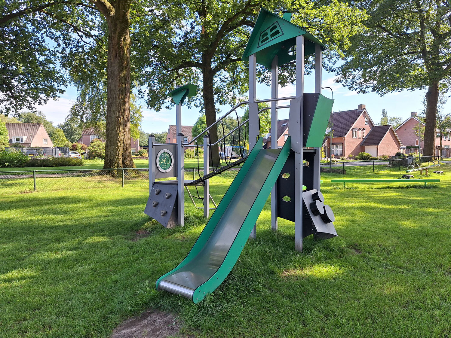 De speelplek in Griendtsveen, gelegen midden in de natuur, had de wens om de speelplek een natuurlijke uitstraling te geven die goed zou passen bij de groene omgeving en de bomen rondom de speeltuin. Door het gebruik van veel groene elementen in de nieuwe speeltoestellen, sluiten deze naadloos aan bij de natuurlijke omgeving van het dorp.