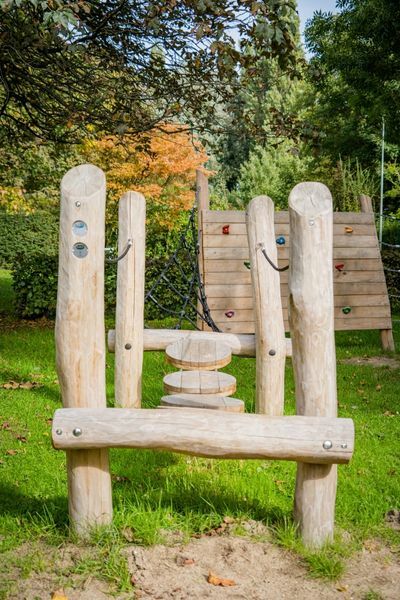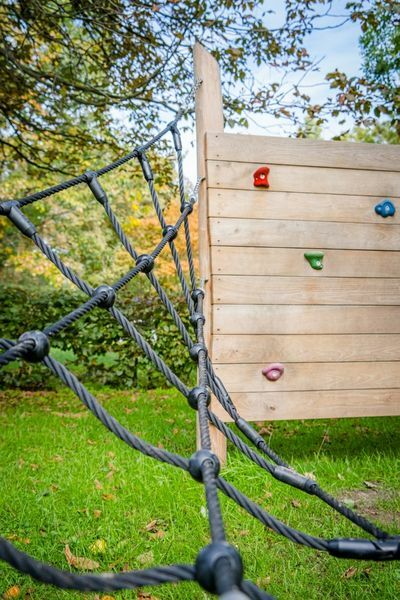 Het voorstel dat wij deden was om Speelparcours Georgia te plaatsen. Hier was de speeltuinvereniging het meteen mee eens. Dit Robinia speeltoestel sluit goed aan bij de wensen van de opdrachtgever, maar ook bij de omgeving. Ondanks dat er zich in de speeltuin speeltoestellen van allerlei materiaalsoorten bevinden, bevindt deze zich op een natuurlijke plek. Het terrein is omringd door veel bomen en planten. Robinia hout heeft een natuurlijke uitstraling en dus past dit speelparcours perfect binnen het plaatje!