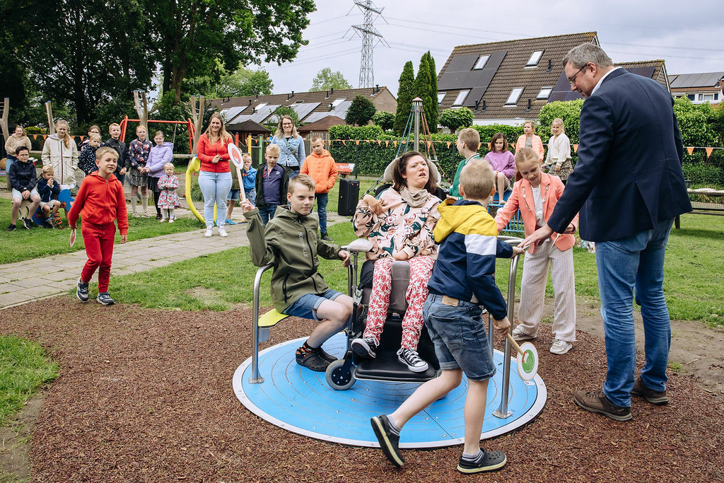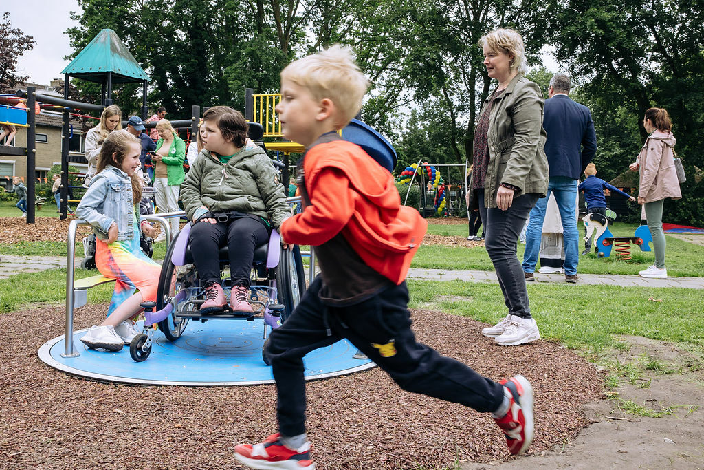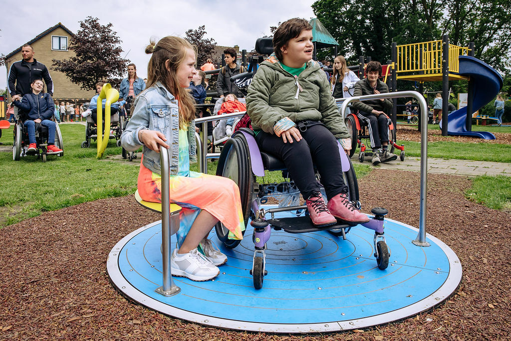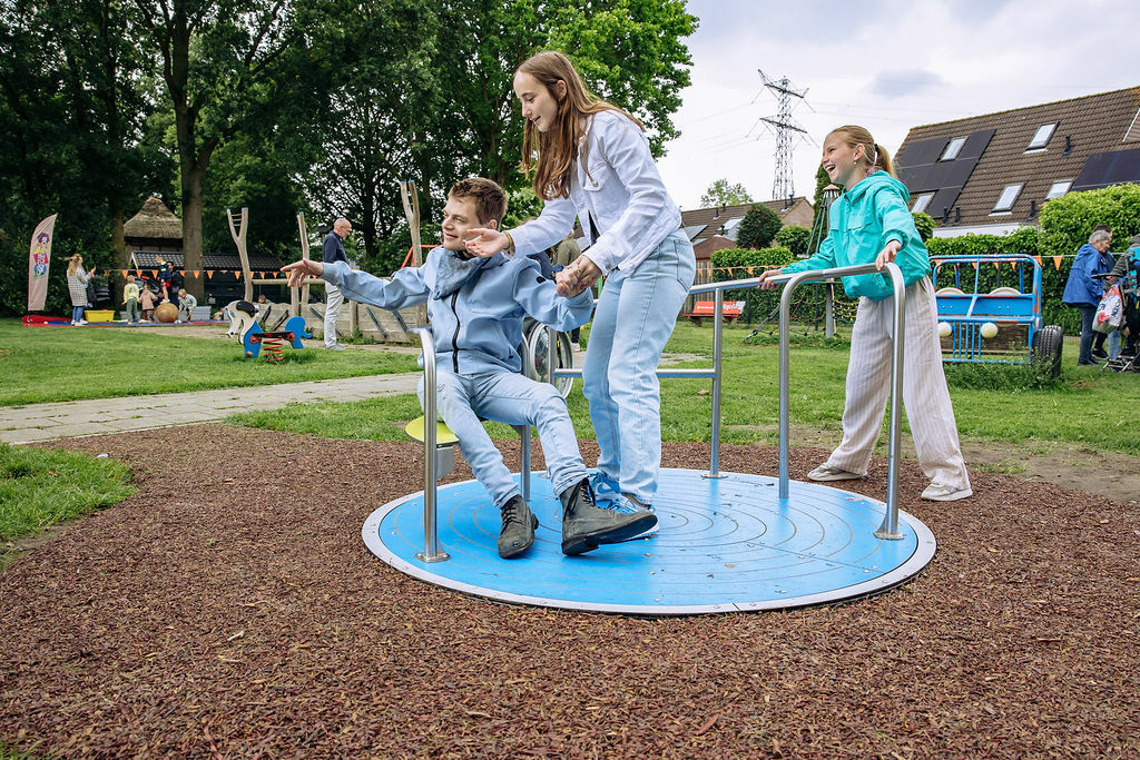 Na zorgvuldig overleg is er gekozen voor een inclusieve carrousel die speciaal is ontworpen voor gebruik door kinderen met en zonder beperkingen. Het toestel is laag bij de grond en biedt ruimte voor een rolstoel. waardoor mindervalide kinderen gemakkelijk het toestel kunnen betreden en deelnemen aan het gezamelijke speelplezier.