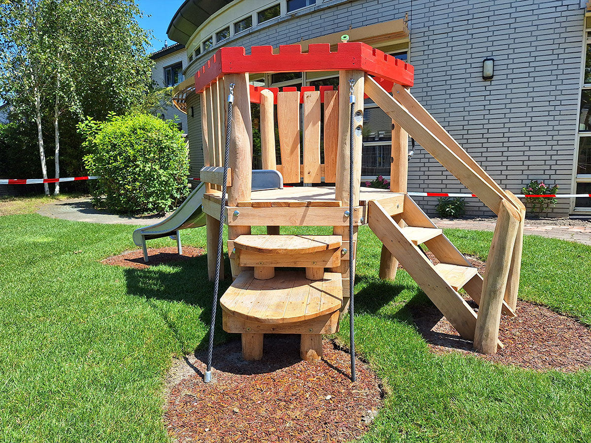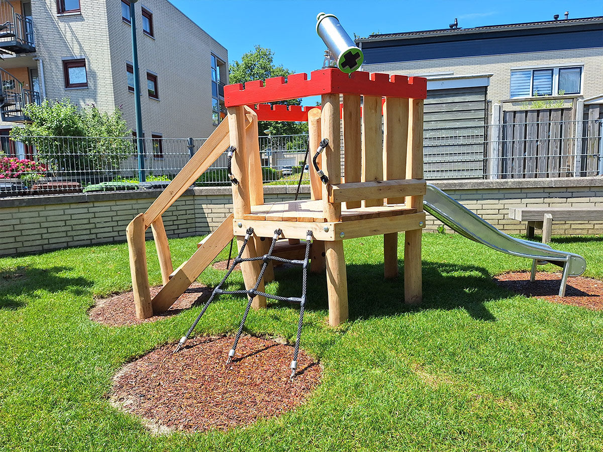 Speelkasteel Ridder biedt de jonge kinderen volop de mogelijkheid om te te klimmen en te spelen in een fantasierijke omgeving. Balanceertoestel Kroki draagt daarnaast bij aan de ontwikkeling van het evenwicht en de motorische vaardigheden. Beide toestellen passen dus perfect bij de visie van de kinderopvang en de beoogde doelgroep.