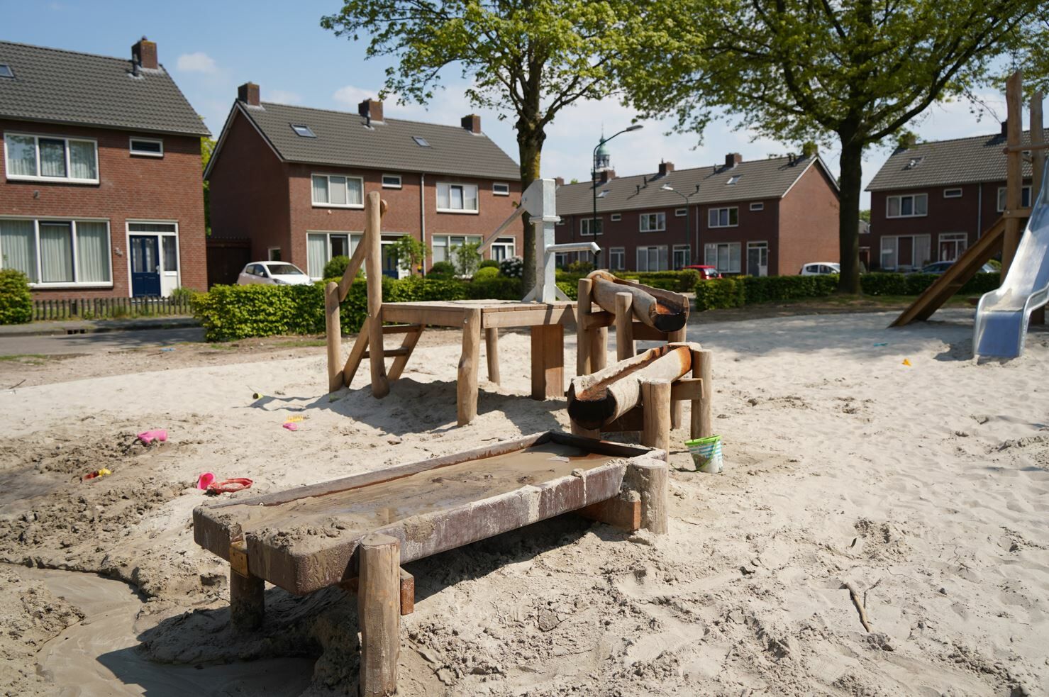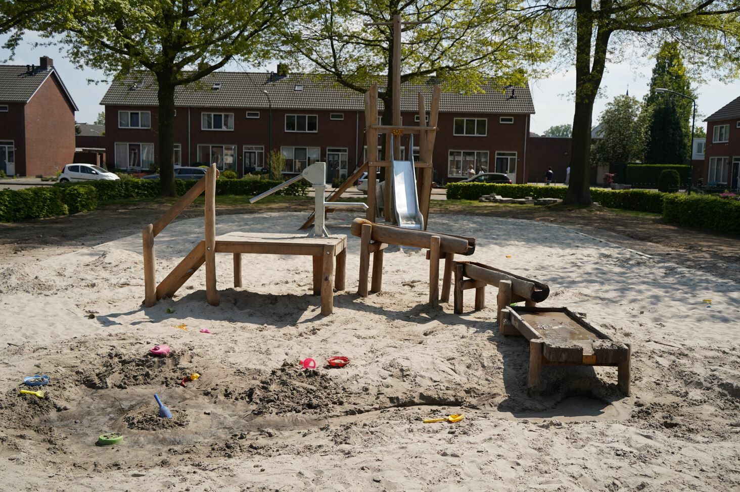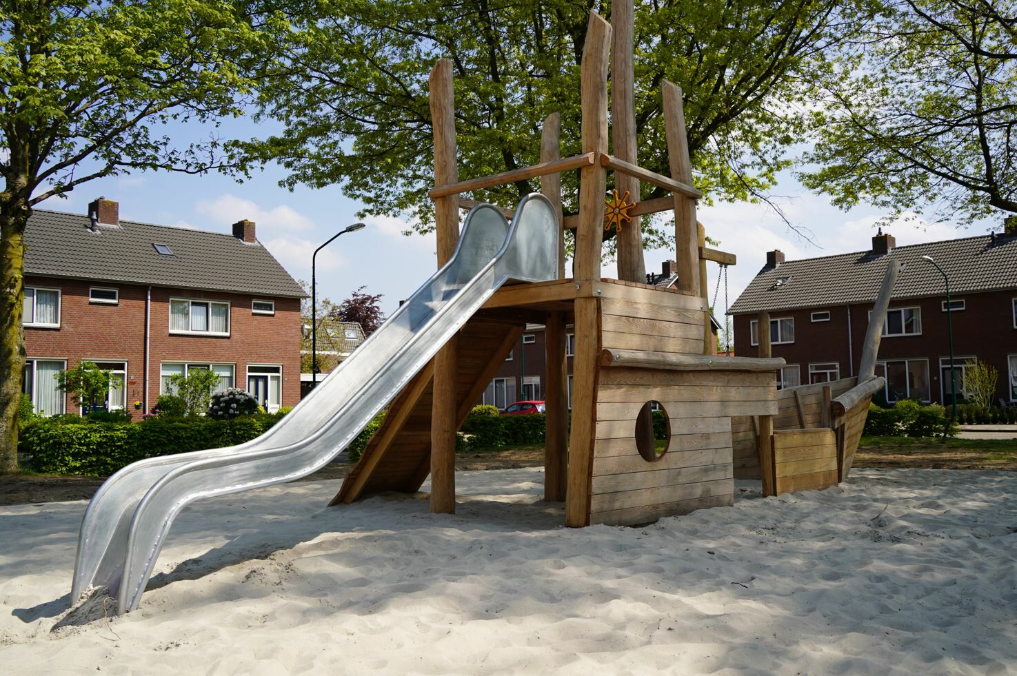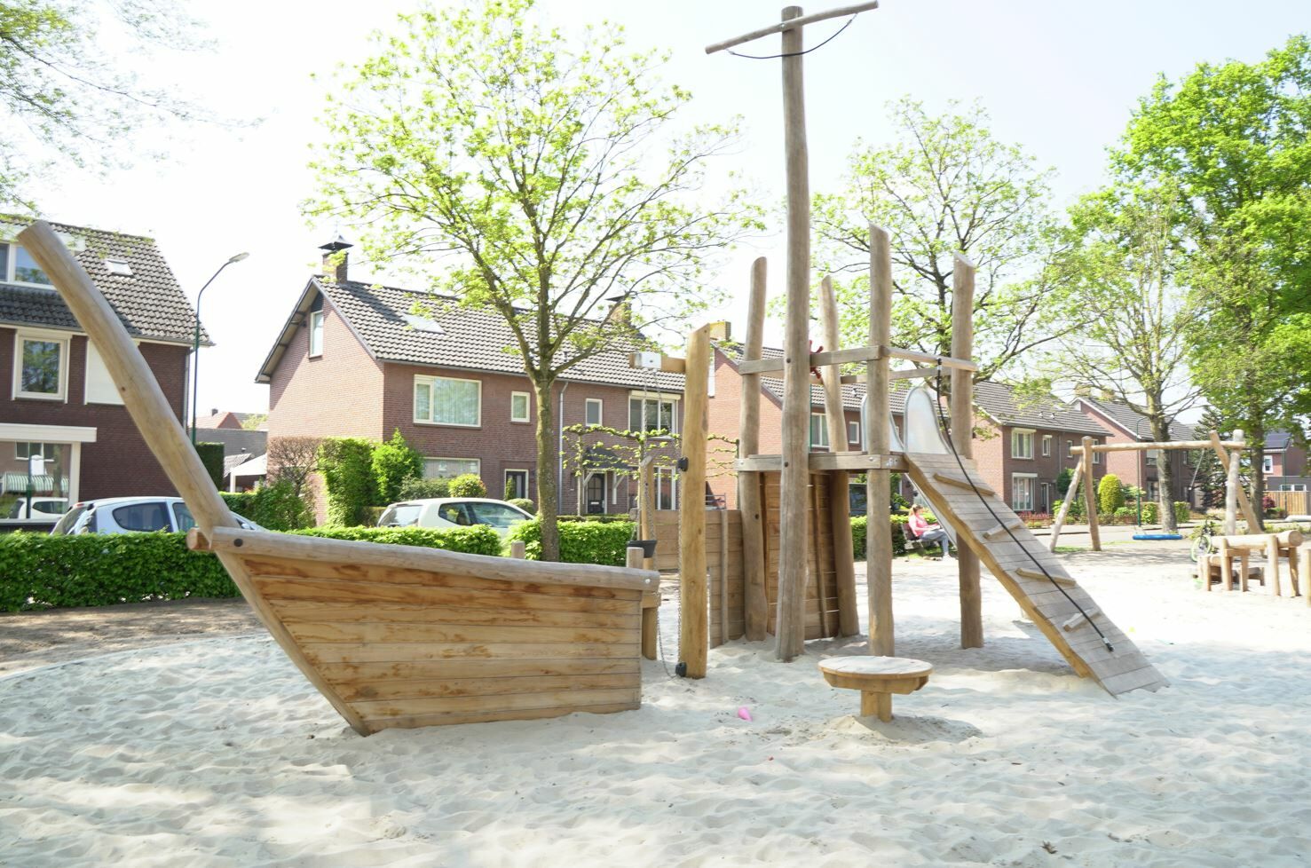 Er is een combinatie van verschillende speeltoestellen gemaakt van Robinia hout gekomen. Een combinatie van toestellen die aantrekkelijk zijn voor jong en oud. De reden dat er voor Robinia hout is gekozen komt omdat deze natuurlijke uitstraling het beste past bij de buurt.