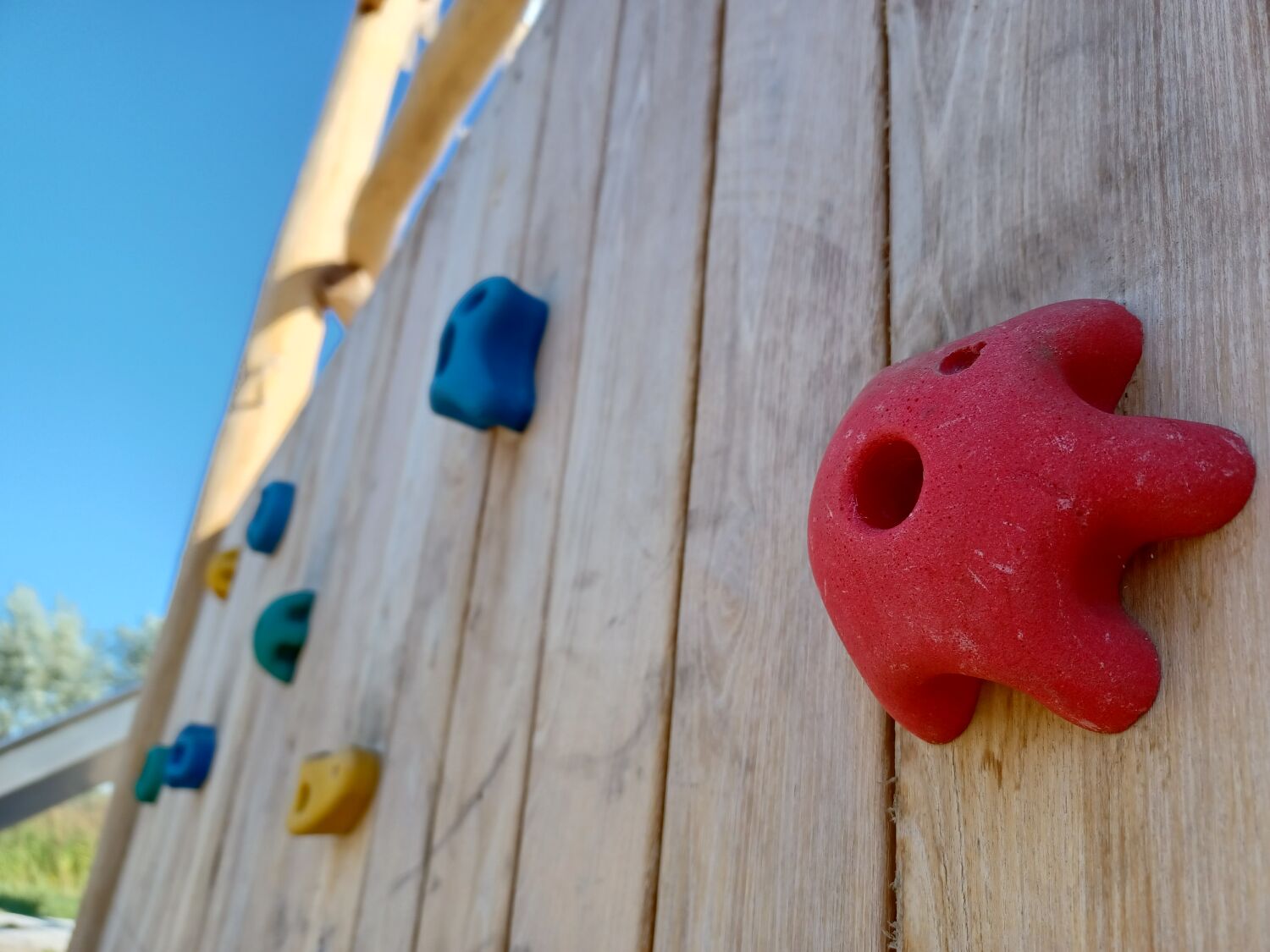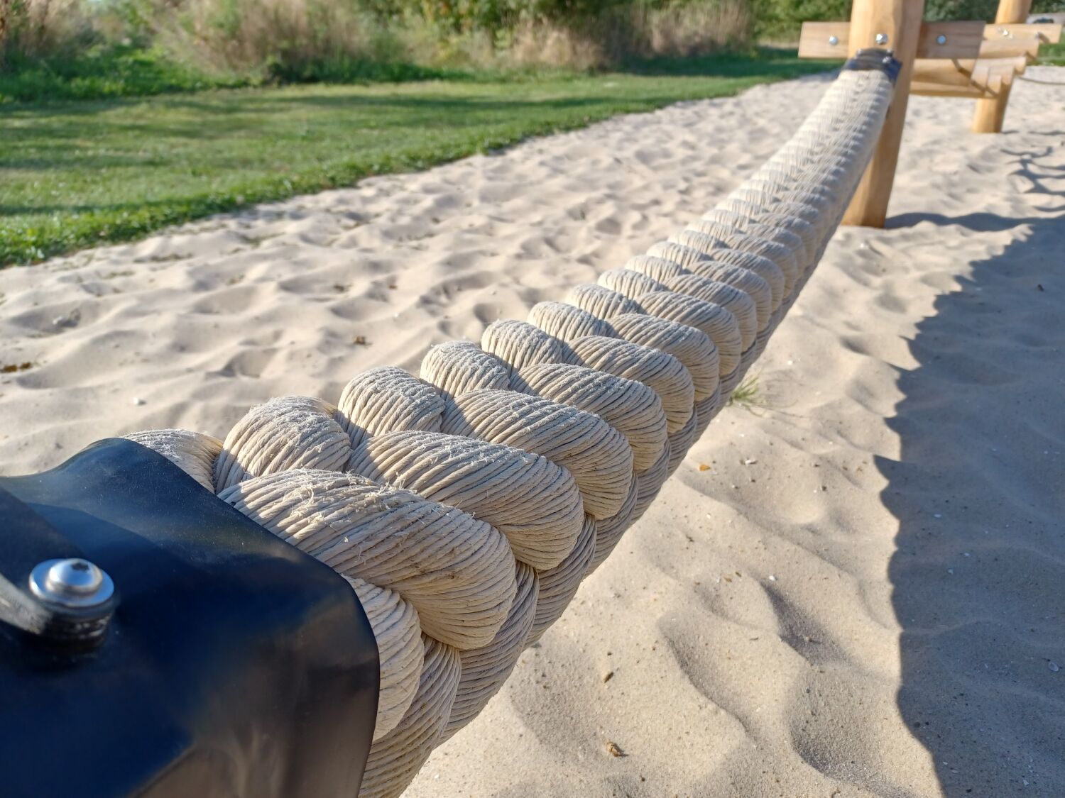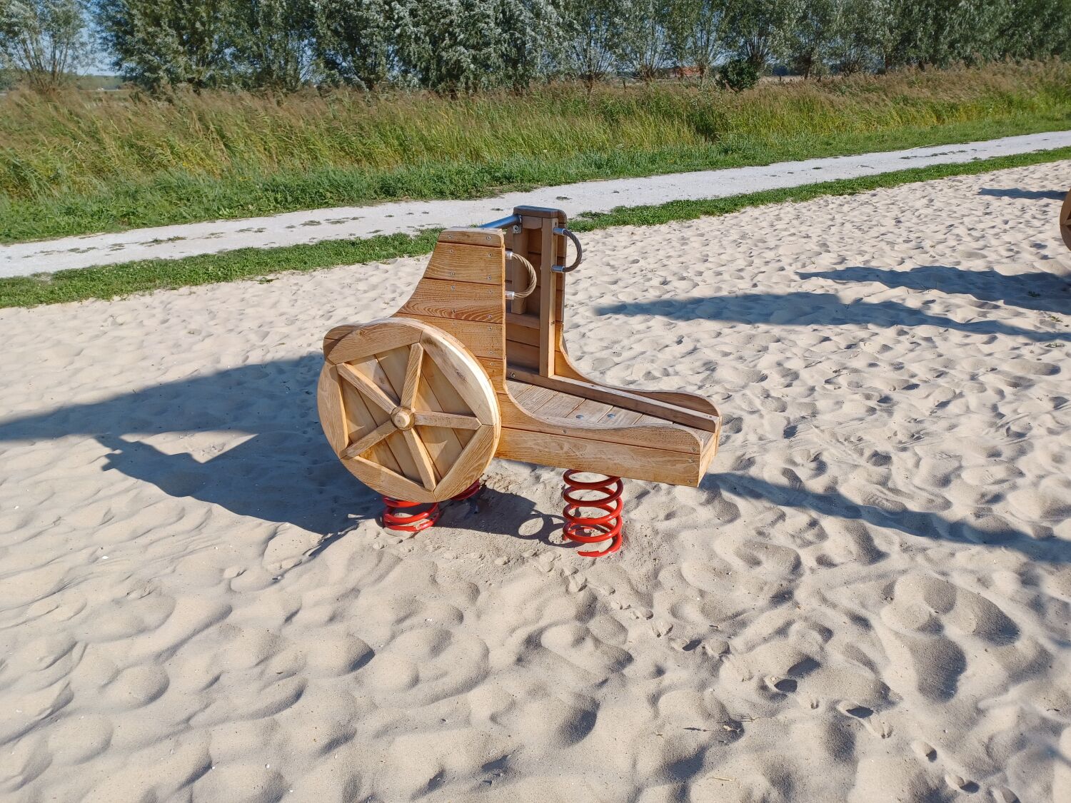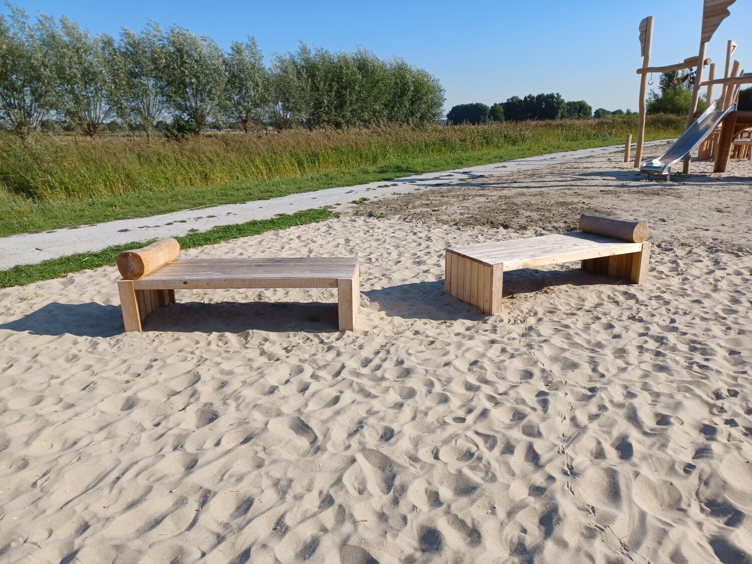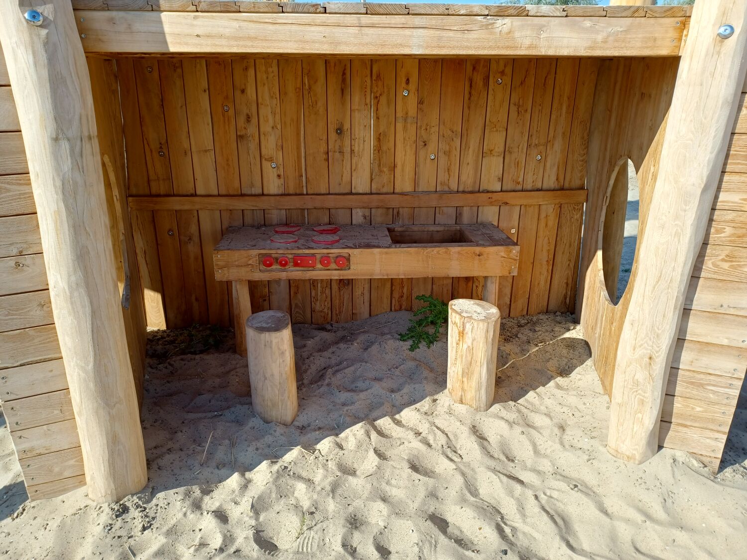 Alle aanwezige speeltoestellen zijn gemaakt van Robinia. Dit natuurlijke, rauwe materiaal draagt extra bij aan het historische thema van de speelplek. Als ondergrond is er voor geel zand gekozen. Zo lijkt het echt alsof je in een Romeinse arena aan het strijden bent.