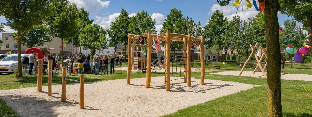 Natuurlijk is daar wel budget voor nodig, en dat had de gemeente niet voor een volledige speeltuin. Vandaar dat de buurtbewoners een crowfundingactie hebben gestart. Zowel sponsoren als mensen uit de buurt hebben geld ingelegd en zo genoeg bij elkaar gekregen om een geheel nieuwe speeltuin te laten aanleggen. Hoe tof is dat! Wij waren dan ook ontzettend bij dat wij degene waren die de speeltoestellen mochten verzorgen.