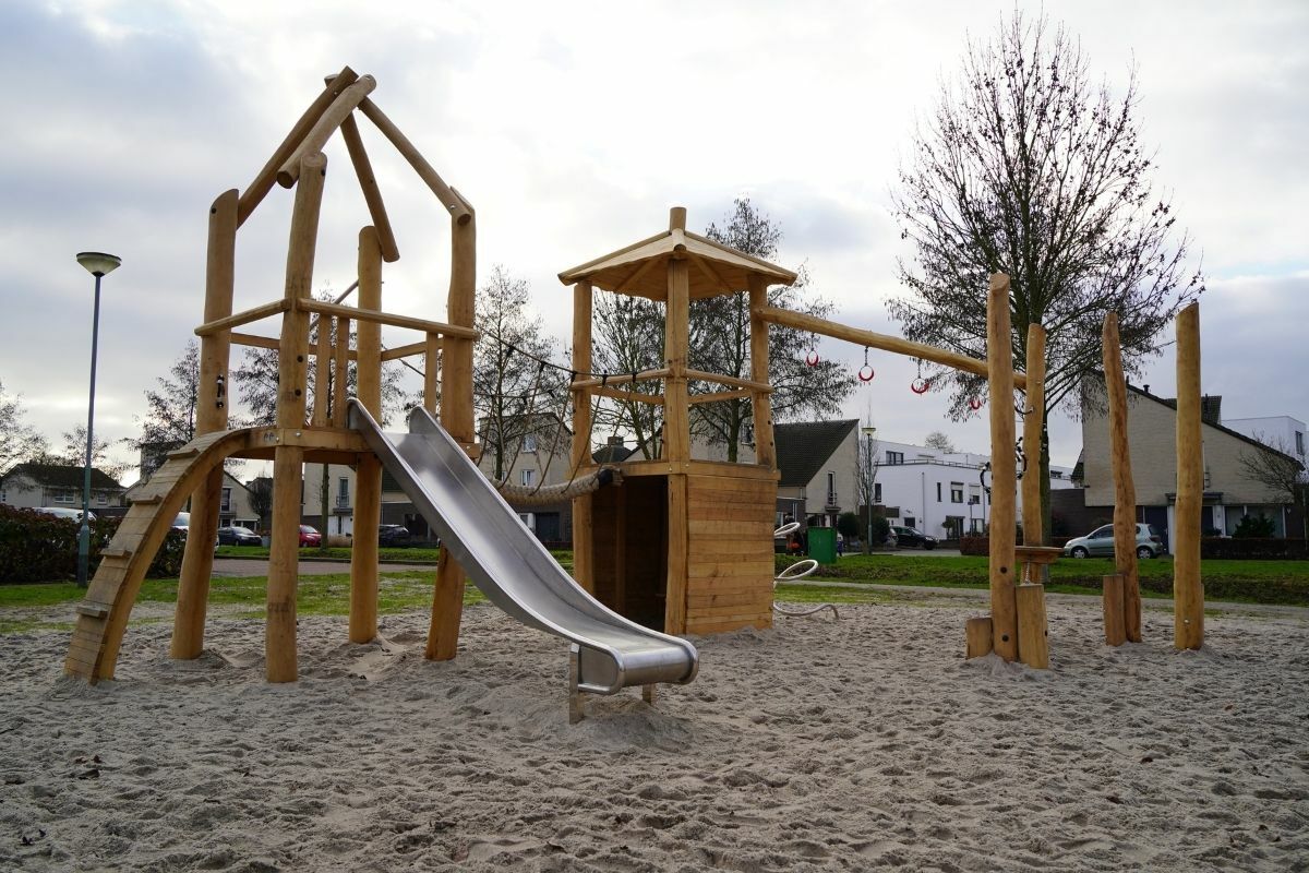 Uiteindelijk zijn de volgende speeltoestellen geplaatst: Speelcombinatie Bianca, Speelparcours Nature Trail, een combinatieschommel, een toestel uit de Action Play playline, stammentrap en een voetbaldoel. Zoals je ziet is het een speeltuin geworden voor alle leeftijdscategorieën.