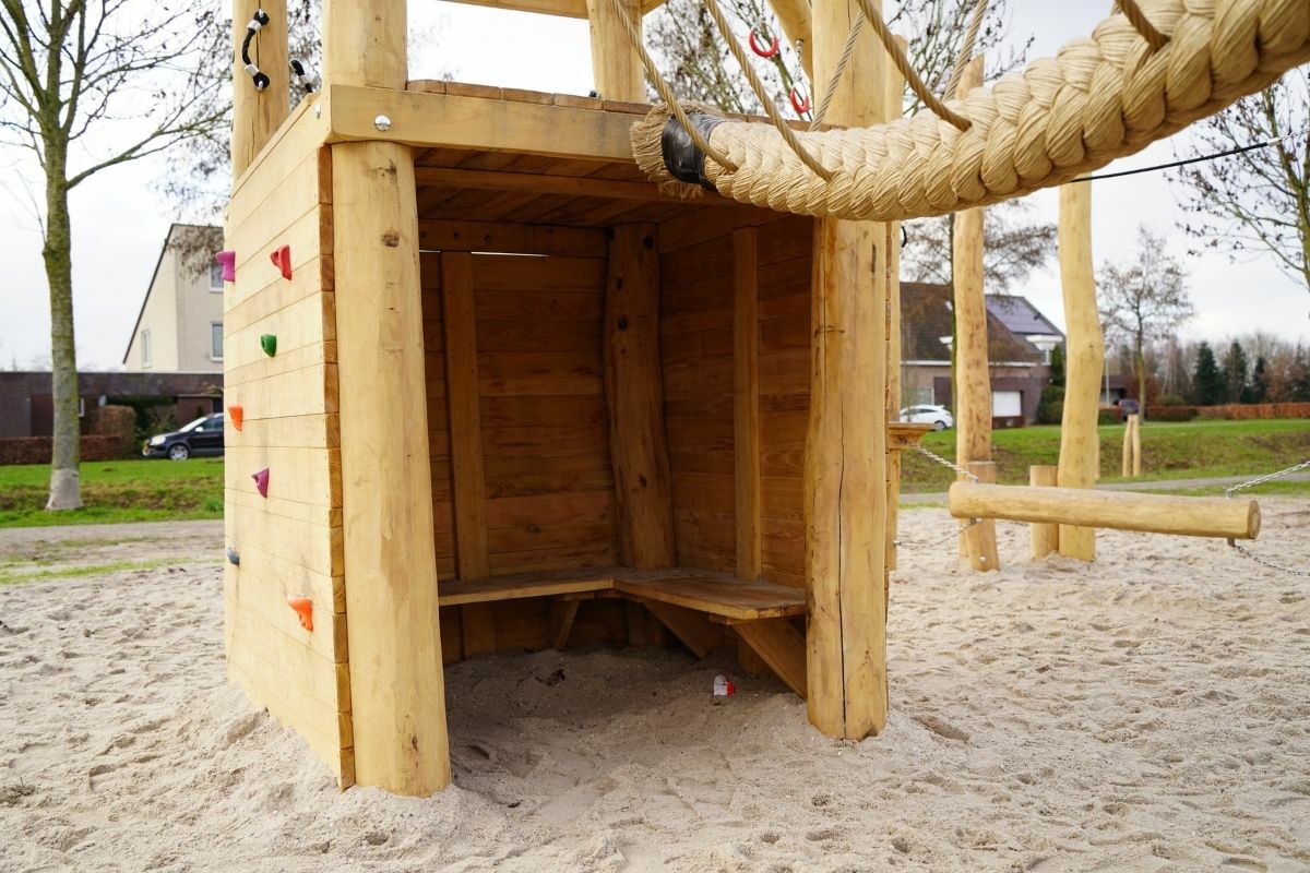 De werkgroep wilde graag dat een lokale ondernemer het project op zich zou pakken. Vandaar dat de klus bij ons terecht is gekomen. We gingen om tafel om het plan te bespreken. Het was al snel duidelijk dat het een speeltuin moest worden met een natuurlijke uitstraling, waarbij speeltoestellen gemaakt van duurzaam materiaal geplaatst zouden worden. Vandaar dat de gehele speeltuin gemaakt is van toestellen van Robinia hout.
