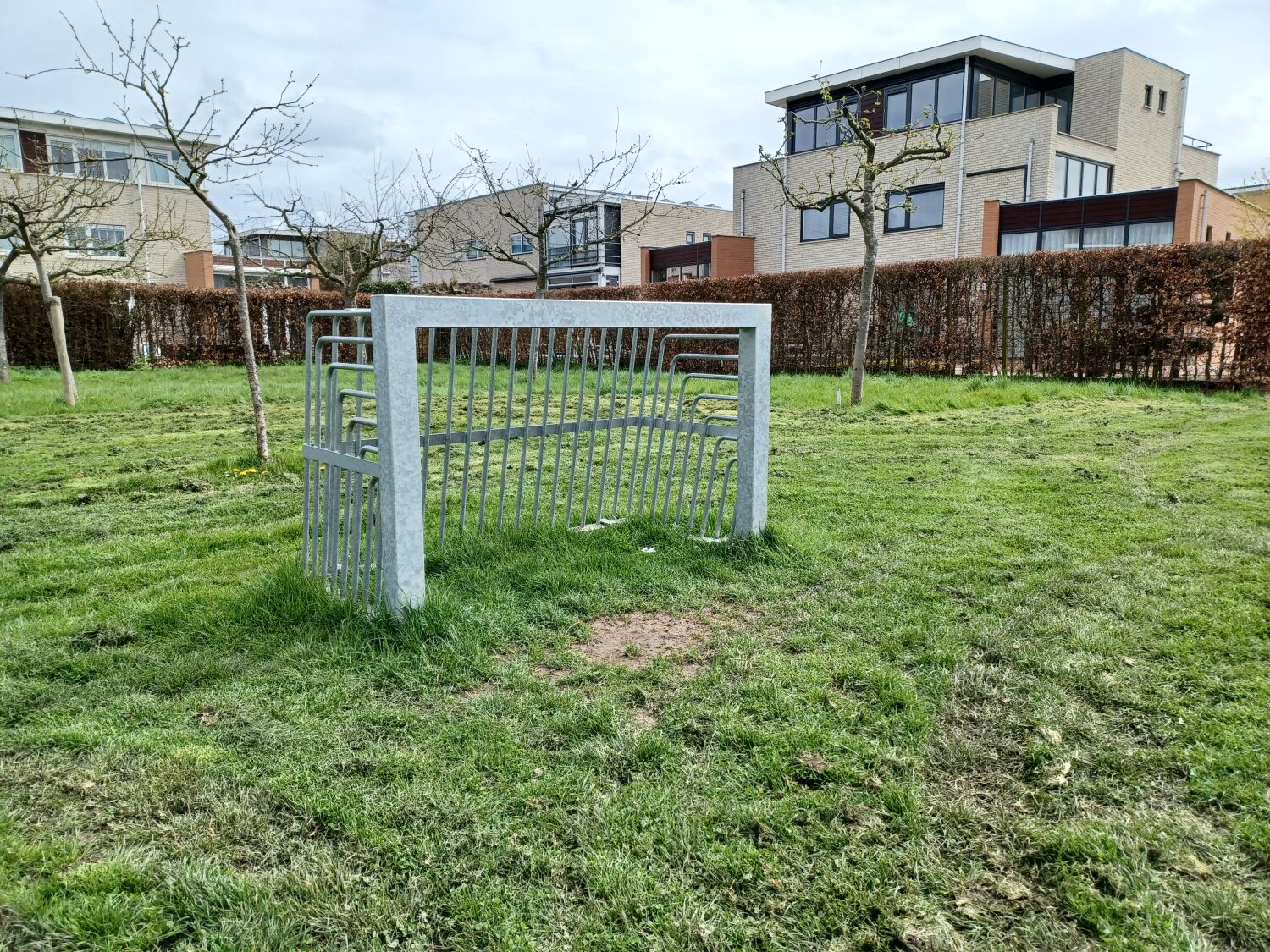 Aangezien de speelplek op het Oranjepeerpad een grasondergrond heeft, hebben wij samen met de aannemer besloten dat er twee voetbaldoeltjes zouden komen. Er was genoeg ruimte voor en zo zou er direct een sportelement aan de speelplek worden toegevoegd.