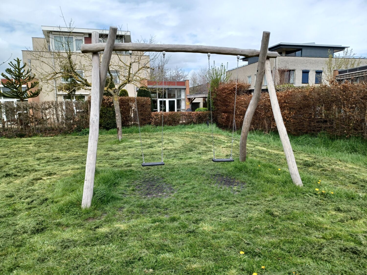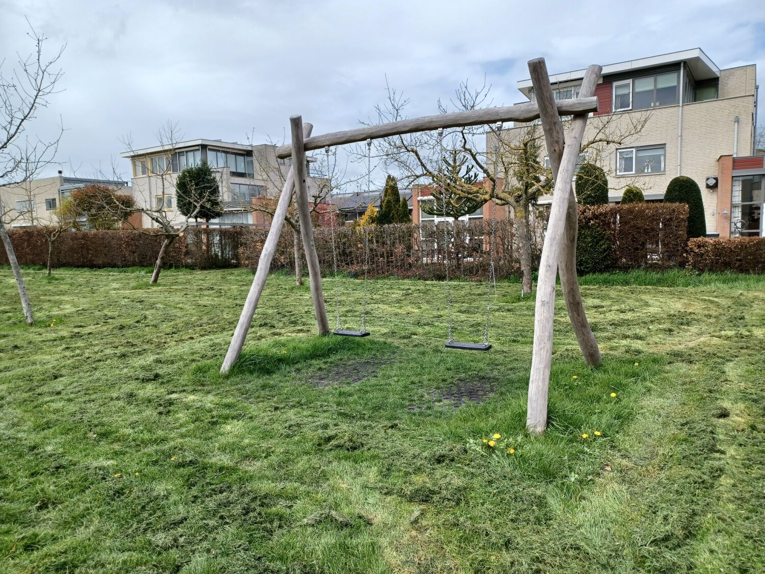 Ook hebben wij een dubbele schommel toegevoegd, gemaakt van Robinia hout. Een schommel is altijd een mooie toevoeging van een speelplek en Robinia hout zorgt voor een mooie, natuurlijke uitstraling. Als ondergrond is hier voor grastegels gekozen, zodat alles fijn stevig blijft staan.