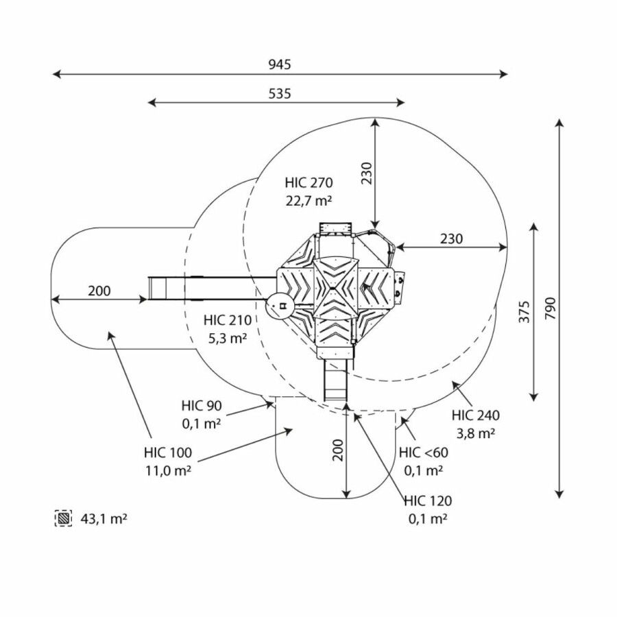 | Opvangzone | 9,5 x 7,9 m |