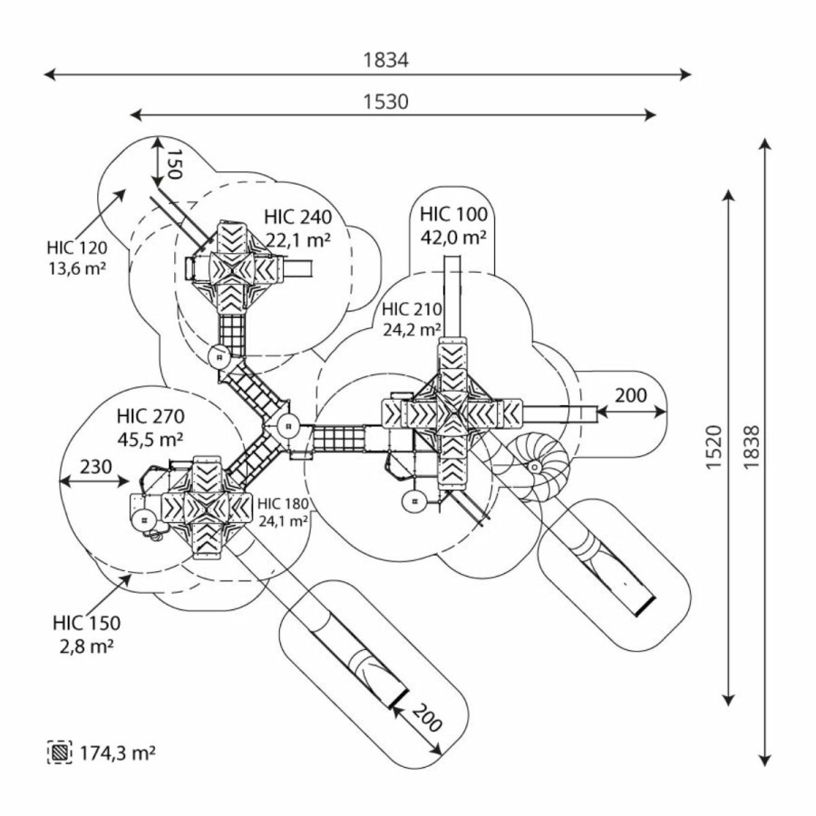 | Opvangzone | 18,4 x 18,4 m |