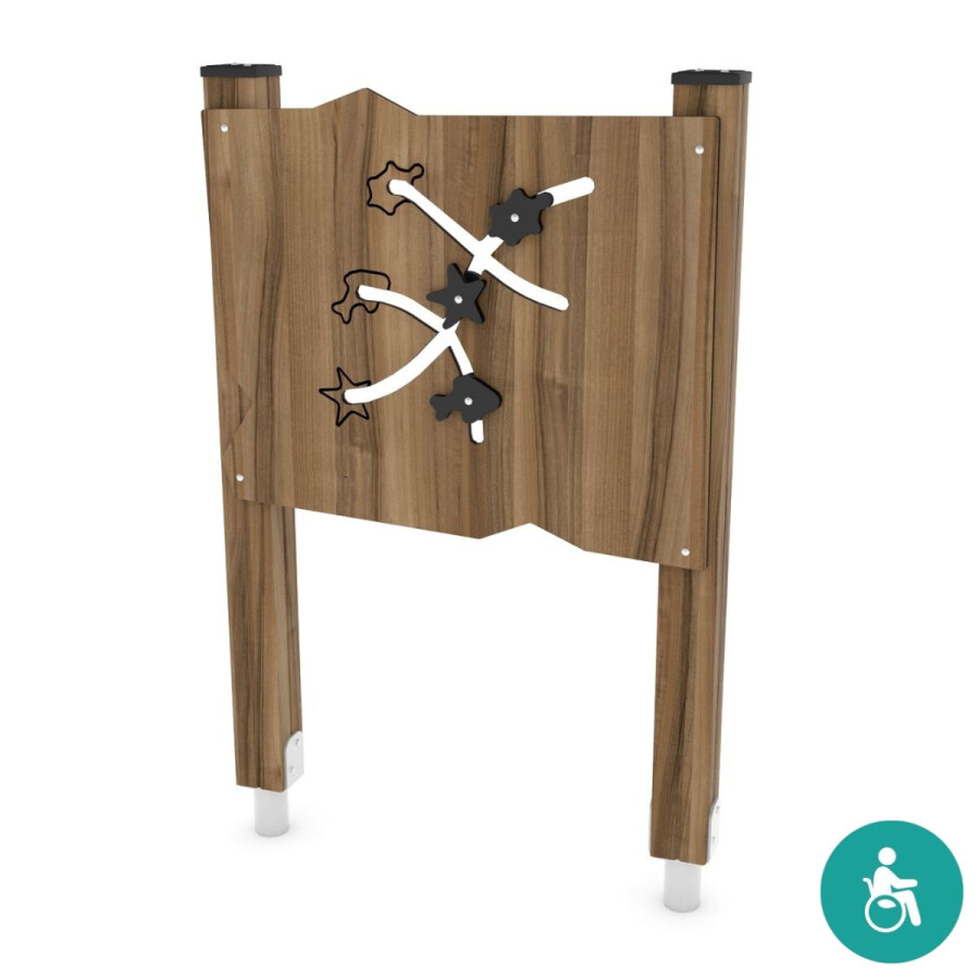 Dit schuifpaneel met het thema 'zee' ontwikkelt de motoriek en de zintuigen van de allerjongsten. De bedoeling is dat de figuren in de juiste positie worden geschoven.Het paneel heeft een hoogte van 1,3 m boven maaivels en is ook geschikt voor inclusief spelen .