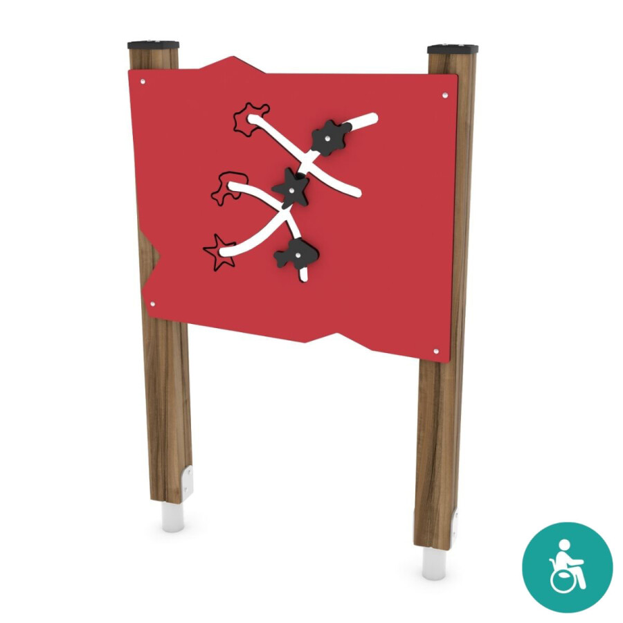 Dit schuifpaneel met het thema 'zee' ontwikkelt de motoriek en de zintuigen van de allerjongsten. De bedoeling is dat de figuren in de juiste positie worden geschoven.Het paneel heeft een hoogte van 1,3 m boven maaivels en is ook geschikt voor inclusief spelen .