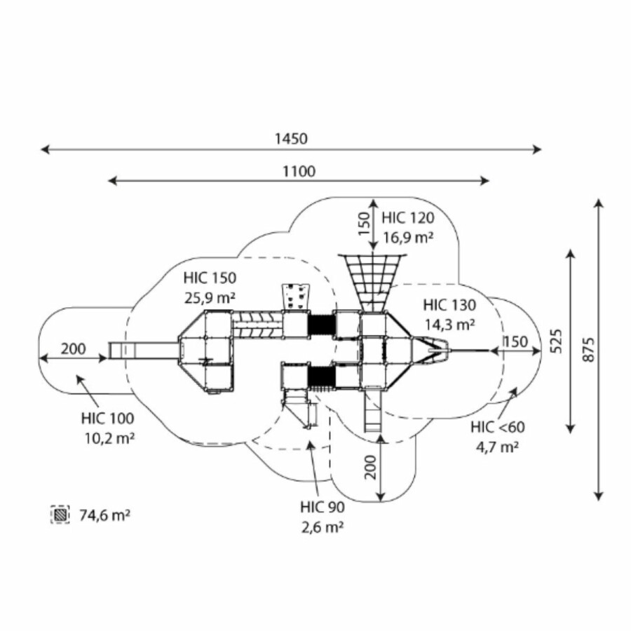 | Opvangzone | 14,5 x 8,8 m |