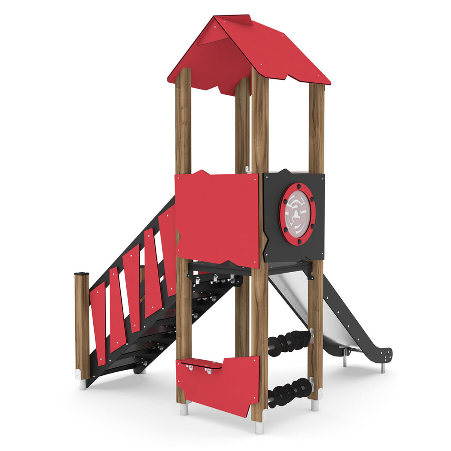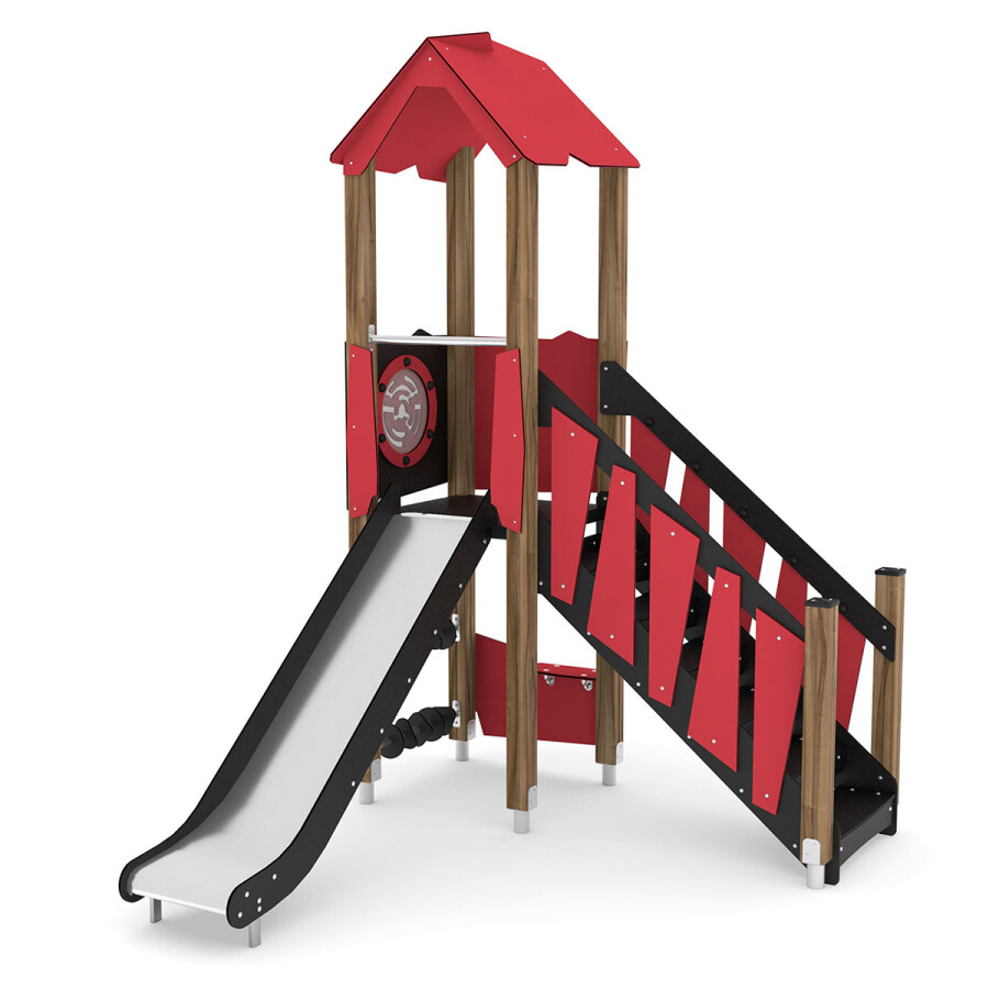 Dit speeltoestel is standaard uitgevoerd met een plywood vloer. Ben je op zoek naar nóg duurzamer speelplezier? Dit speeltoestel is optioneel ook verkrijgbaar met een HPL-vloer. Informeer naar de mogelijkheden.