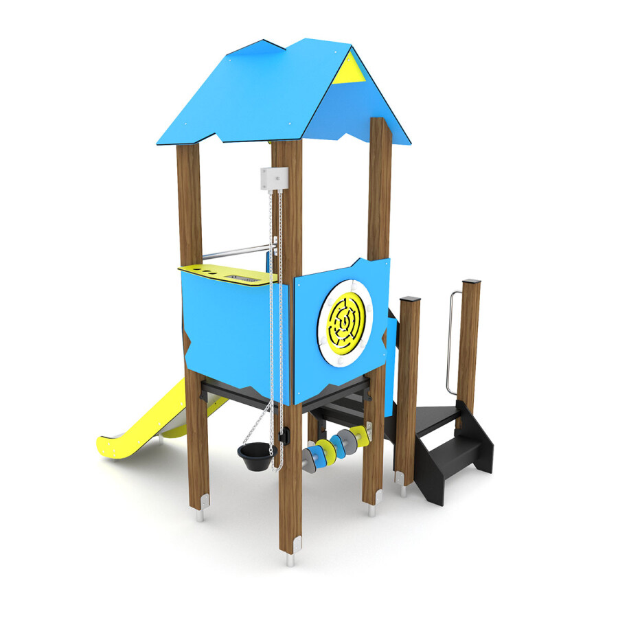 Dit speeltoestel is standaard uitgevoerd met een plywood vloer. Ben je op zoek naar nóg duurzamer speelplezier? Dit speeltoestel is optioneel ook verkrijgbaar met een HPL-vloer. Informeer naar de mogelijkheden.