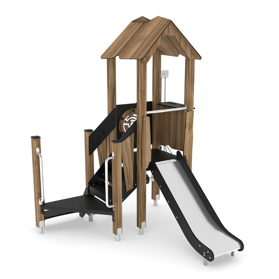 Dit speeltoestel is standaard uitgevoerd met een plywood vloer. Ben je op zoek naar nóg duurzamer speelplezier? Dit speeltoestel is optioneel ook verkrijgbaar met een HPL-vloer. Informeer naar de mogelijkheden.