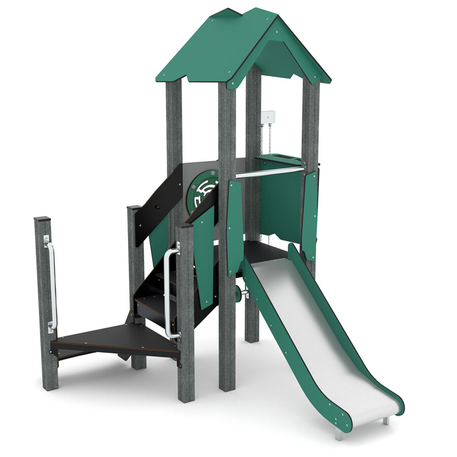 Niet alleen zitten er heel veel speelwaarden in een speelcombinatie, in verhouding tot losse speeltoestellen neemt een speelcombinatie minder ruimte in beslag. Ideaal voor een kleine speelplek!