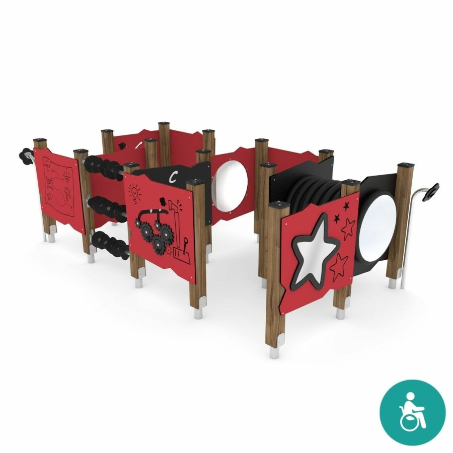 Speelcombinatie Ayla is een veelzijdige, educatieve speelcombinatie. Communiceer via de Walkie Talkie-bloem, verstop je in de tunnel, speel met het telraam, ontdek wat tandwielen doen, zoek de cijfers en letters en nog veel meer. Ook beschikbaar voor inclusief spelen.