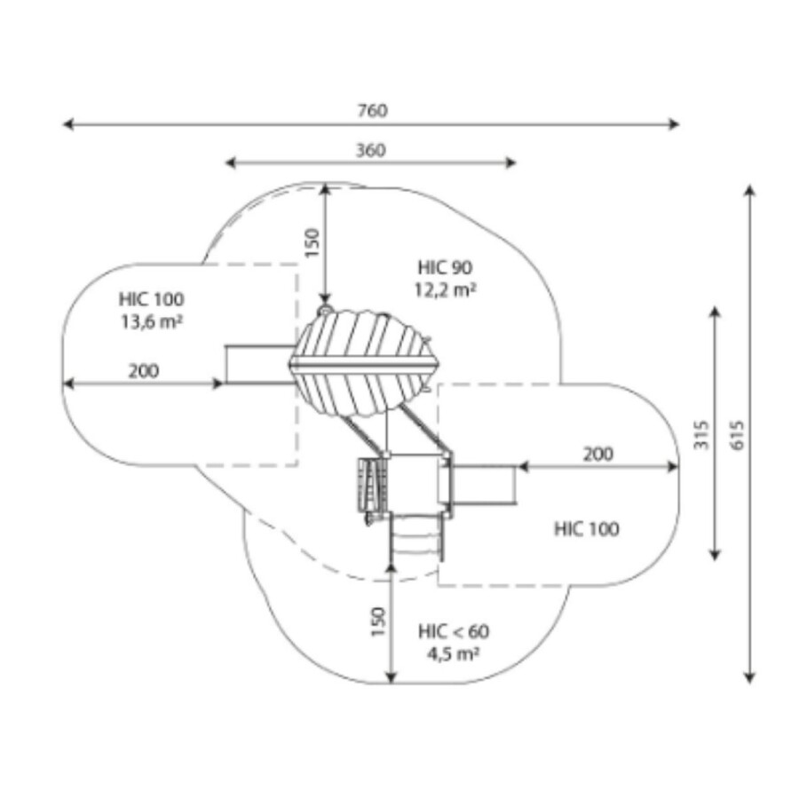 | Opvangzone | 7,6 x 6,2 m |
