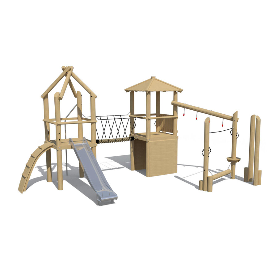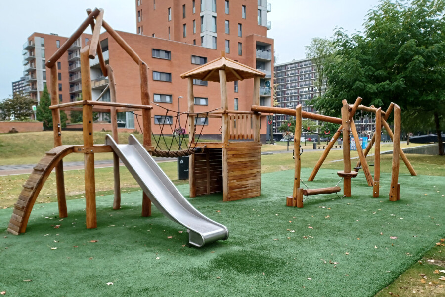 Niet alleen zitten er heel veel speelwaarden in een speelcombinatie, in verhouding tot losse speeltoestellen neemt een speelcombinatie minder ruimte in beslag. Ideaal voor een kleine speelplek!