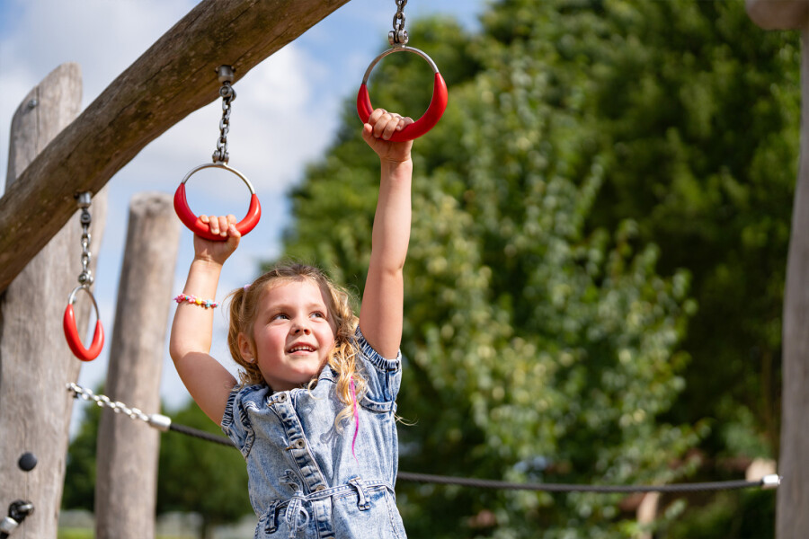 Niet alleen zitten er heel veel speelwaarden in een speelcombinatie, in verhouding tot losse speeltoestellen neemt een speelcombinatie minder ruimte in beslag. Ideaal voor een kleine speelplek!