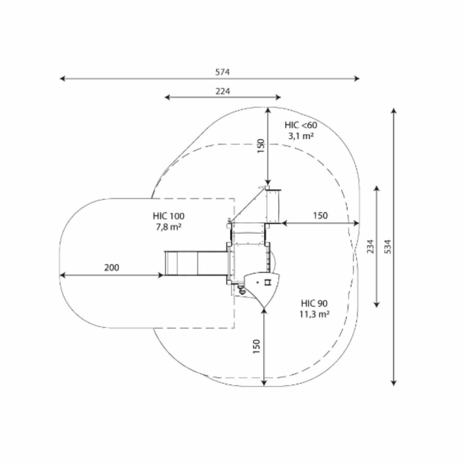 | Opvangzone | 5,8 x 5,4 m |